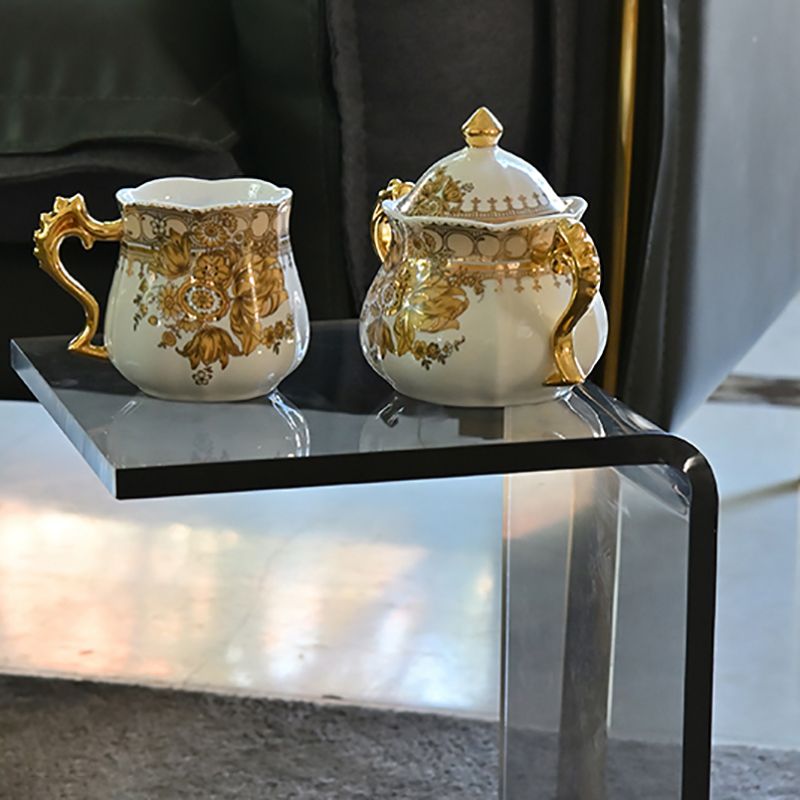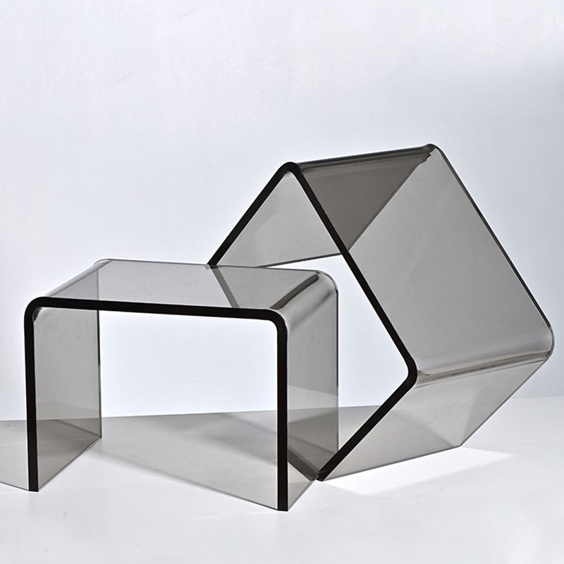 リビングルーム用のモダンな長方形のガラスサイドテーブルスレッドサイドテーブル