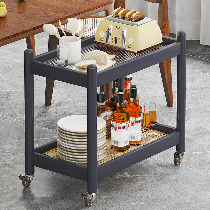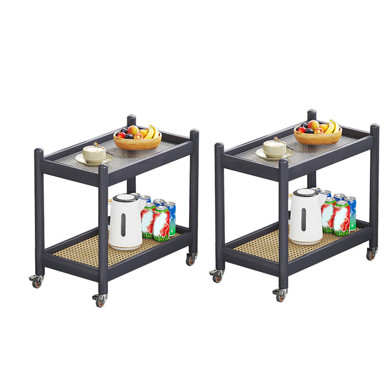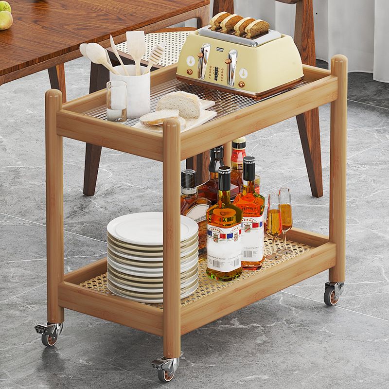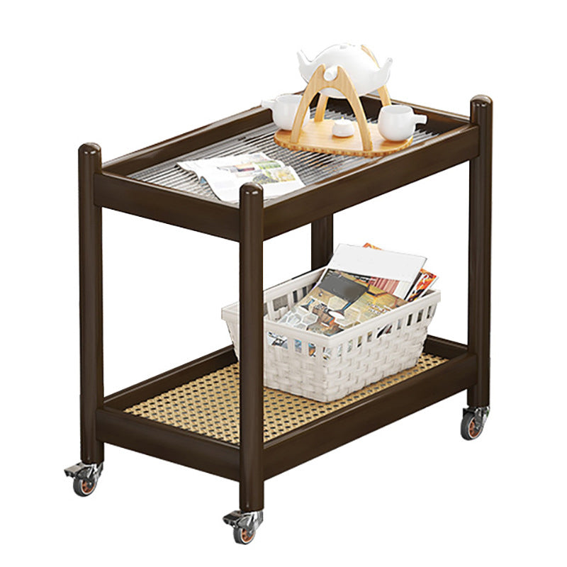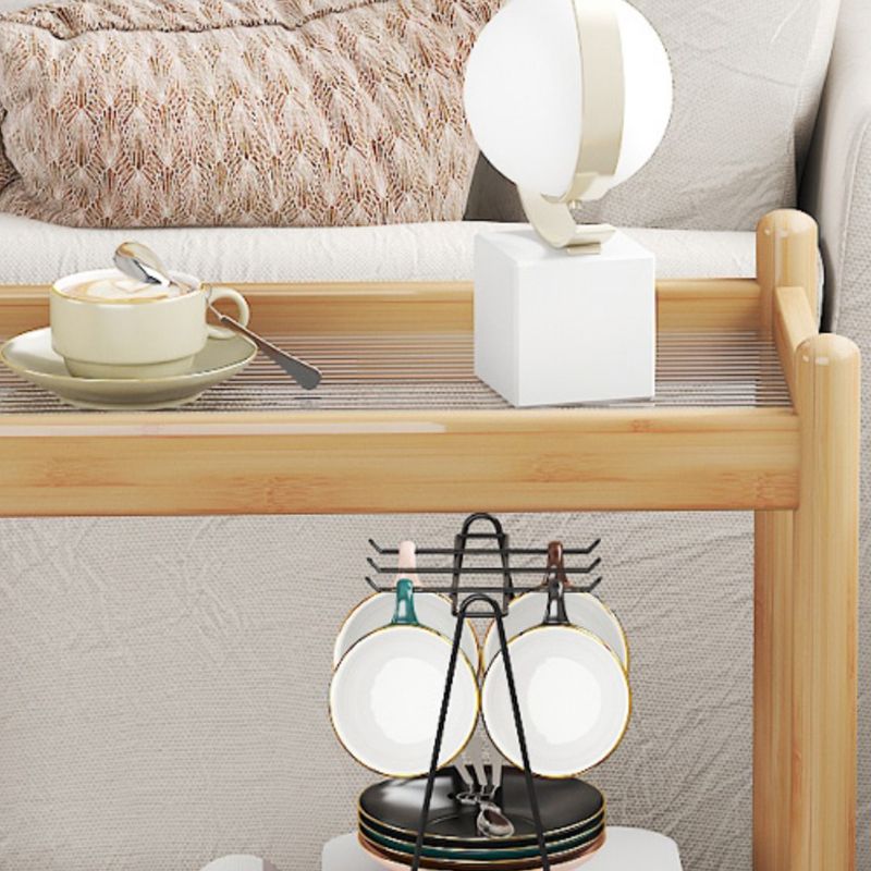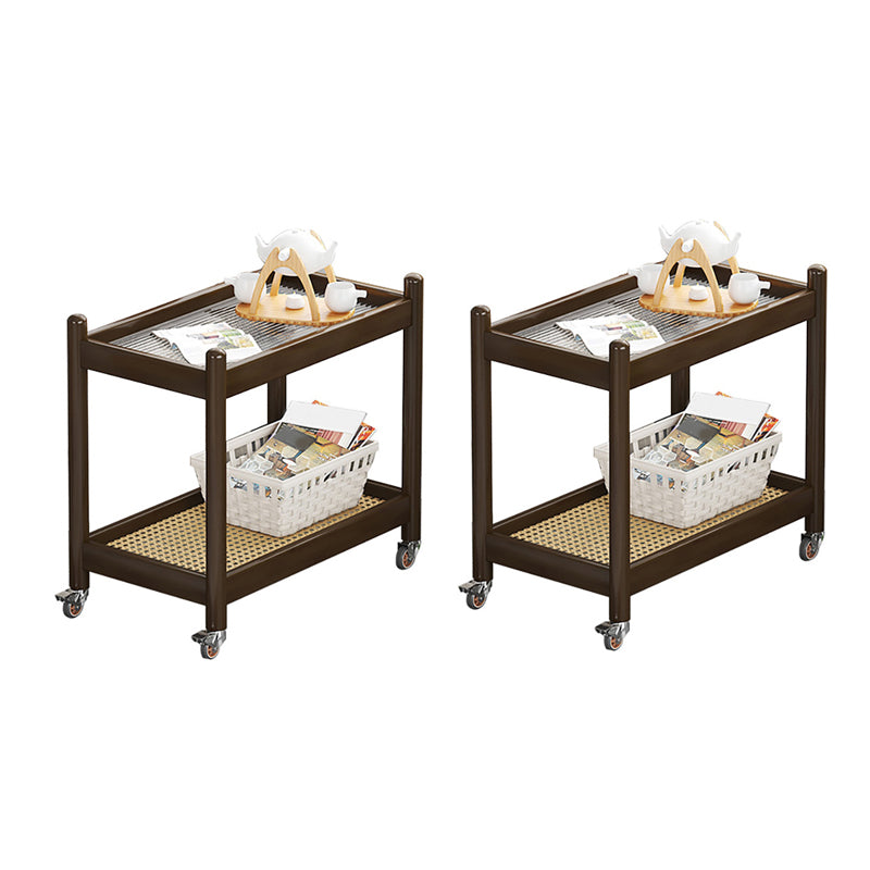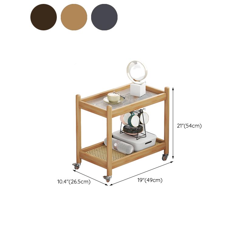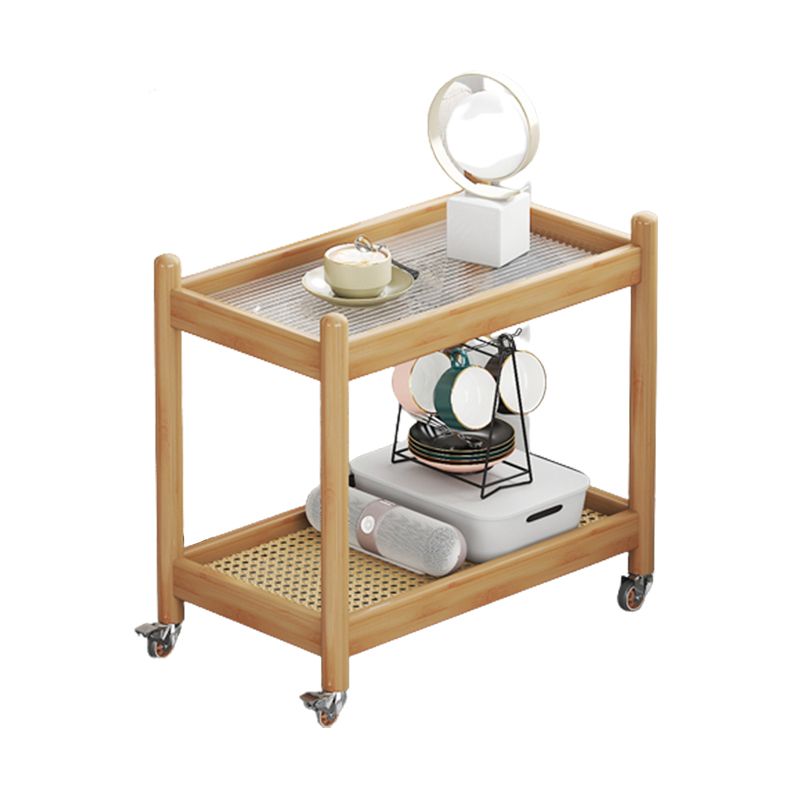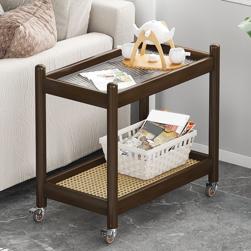 棚と車輪付きの最新の長方形のガラス上端テーブル木材ベースサイドテーブル