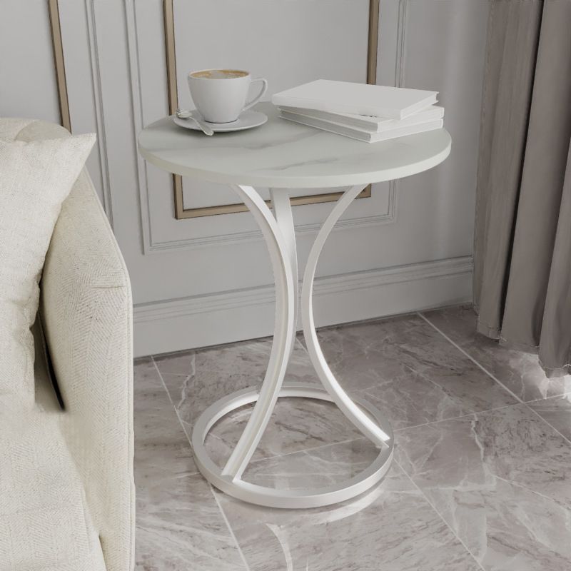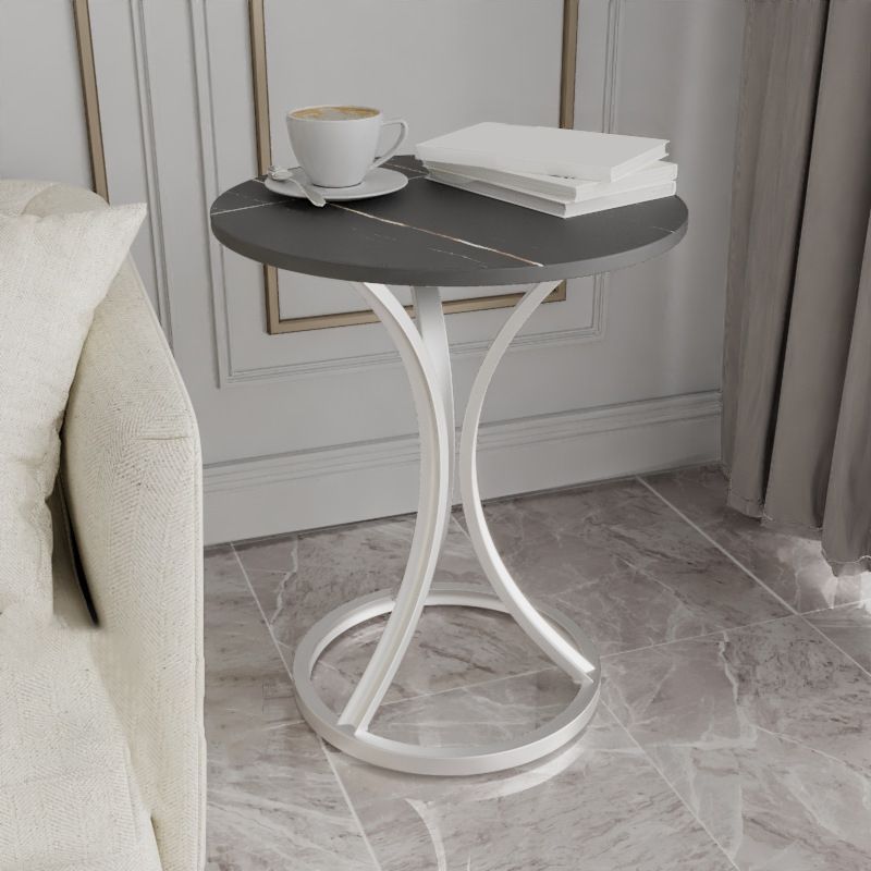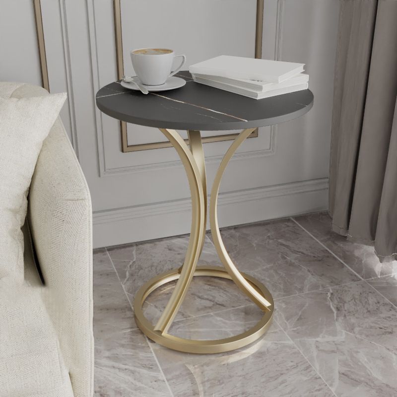 モダンスレートラウンドサイドエンドテーブルフレームベースタイプソファテーブル