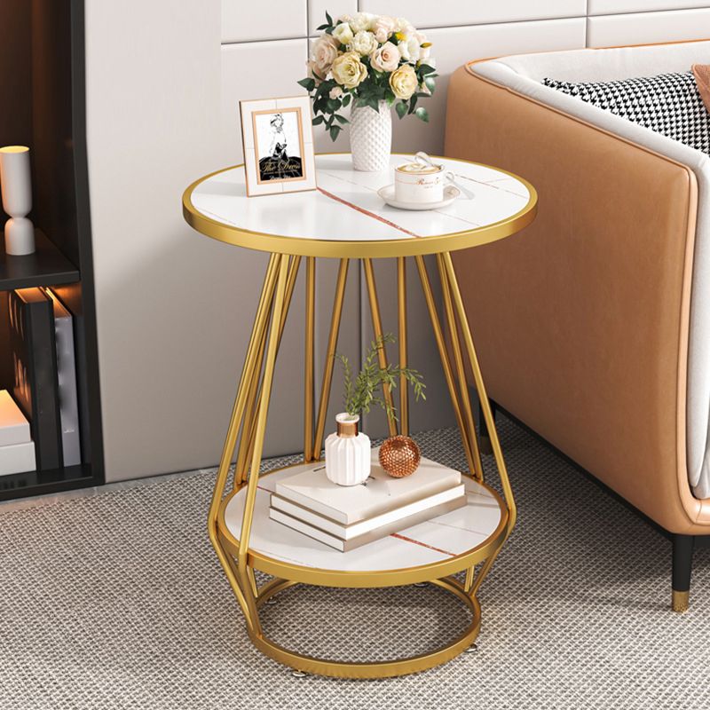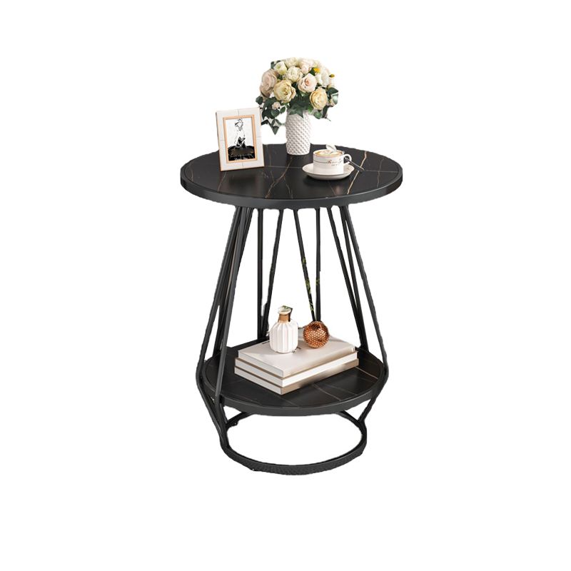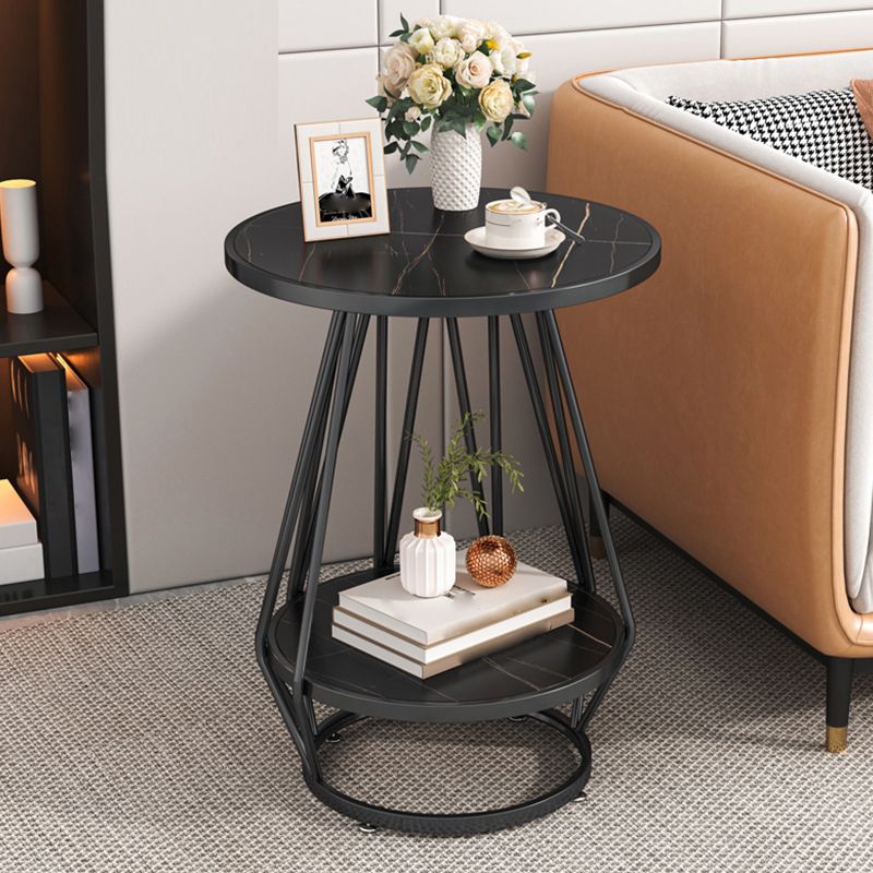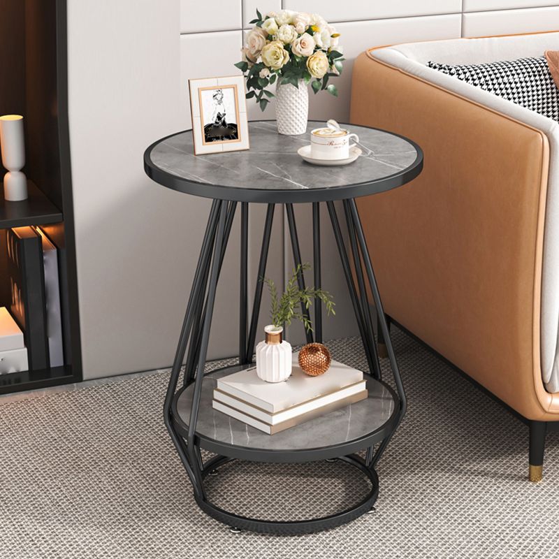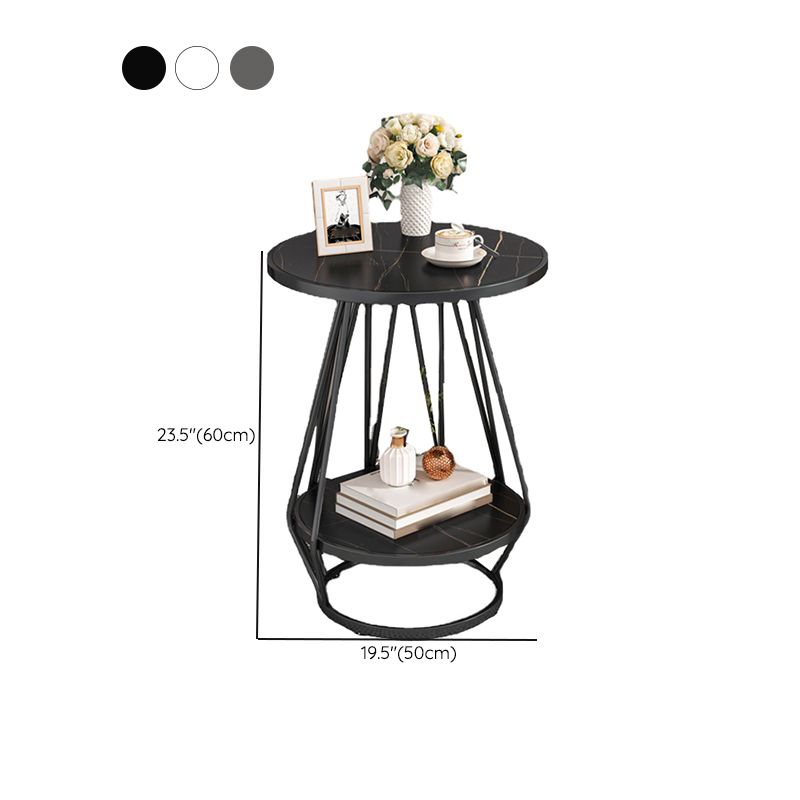 モダンスレートラウンドサイド表19.69 "w棚付きの金属の台座エンドテーブル