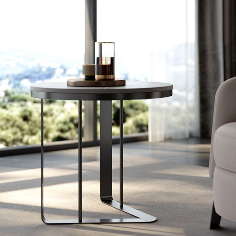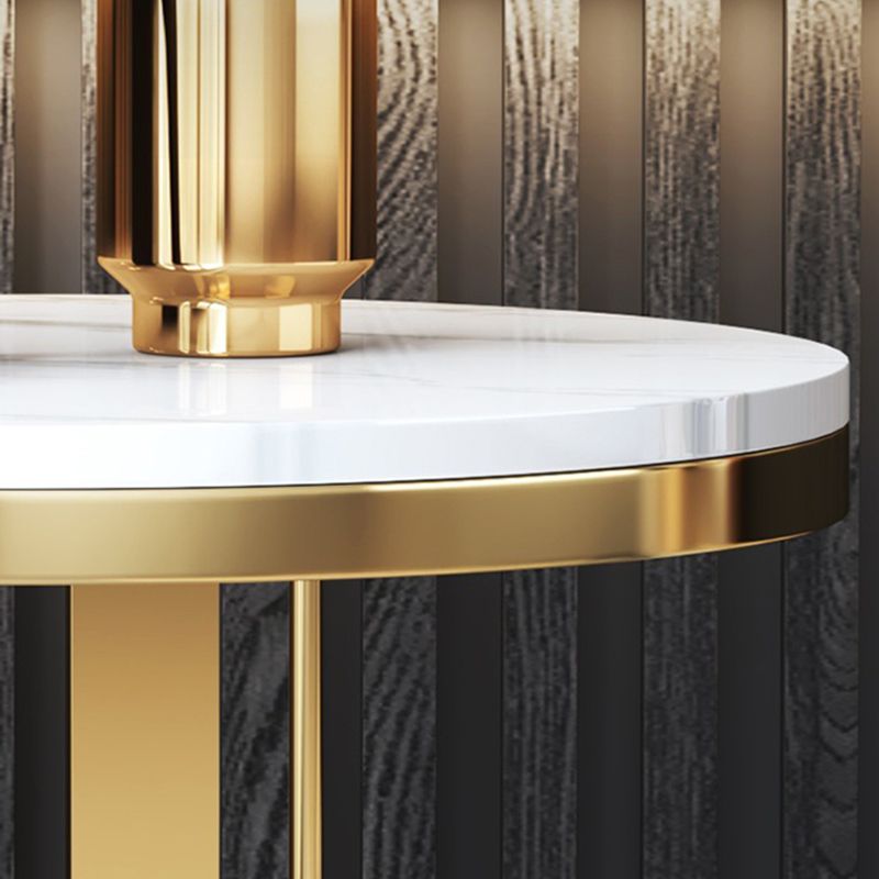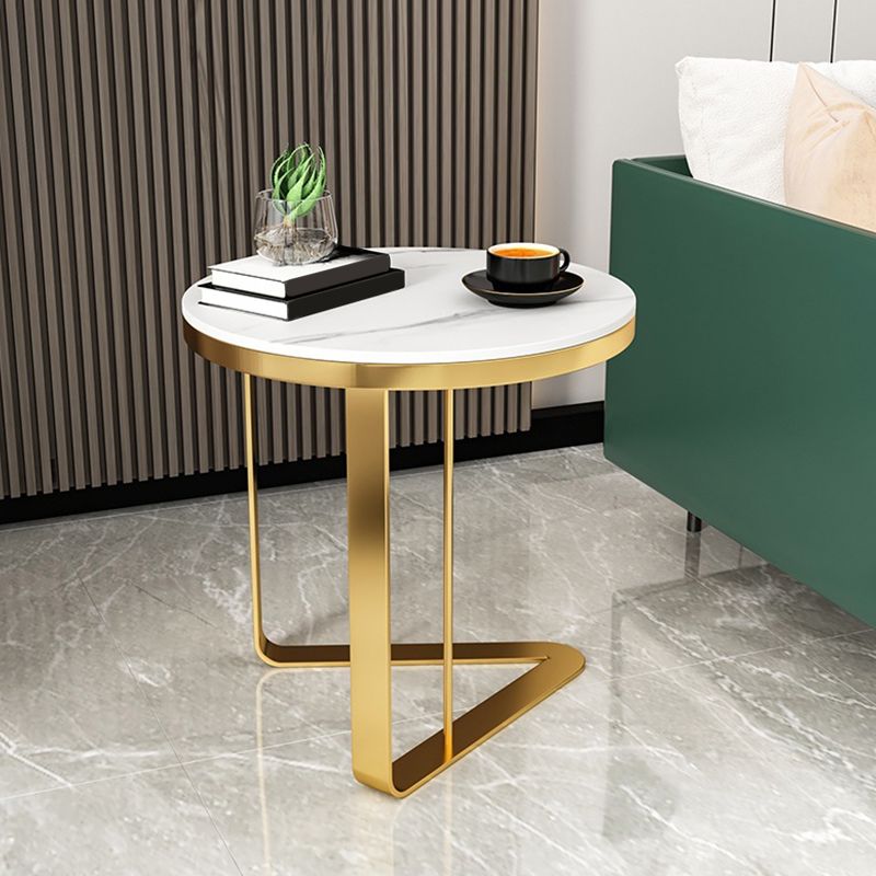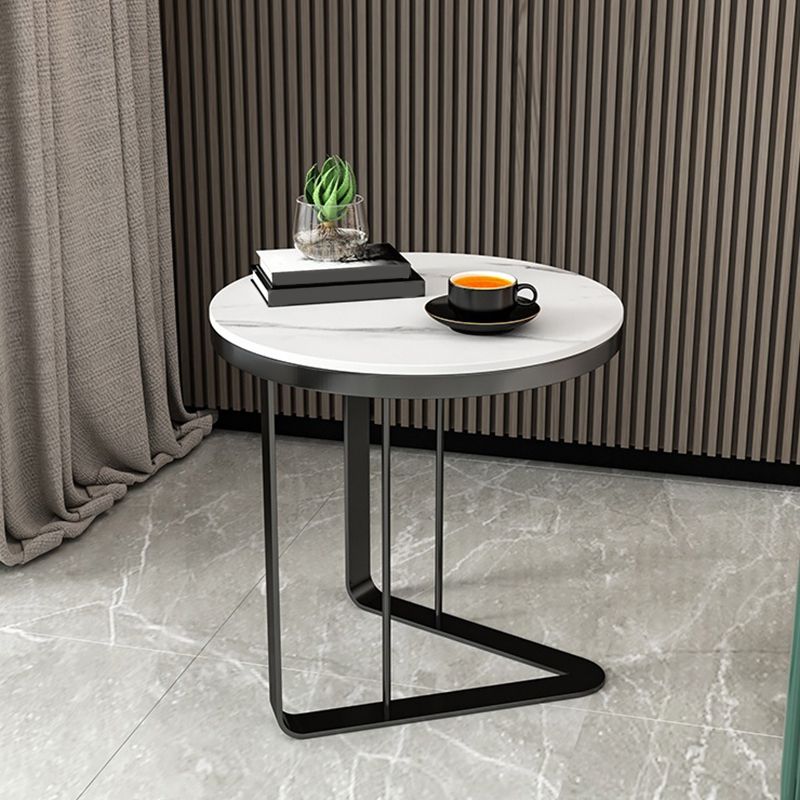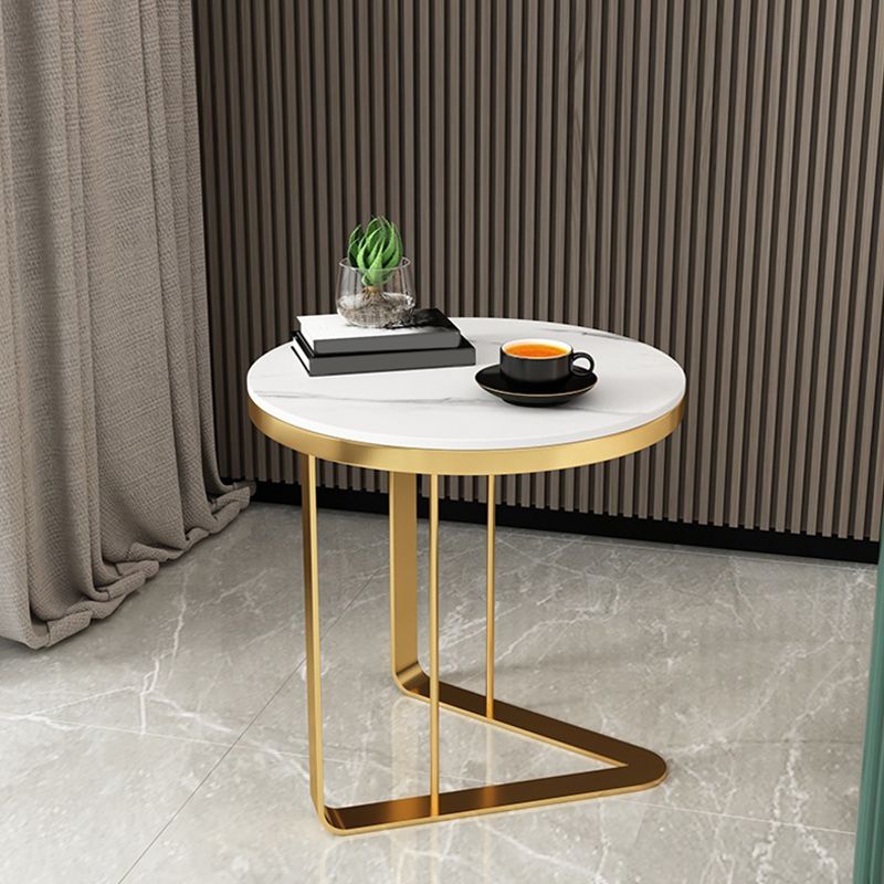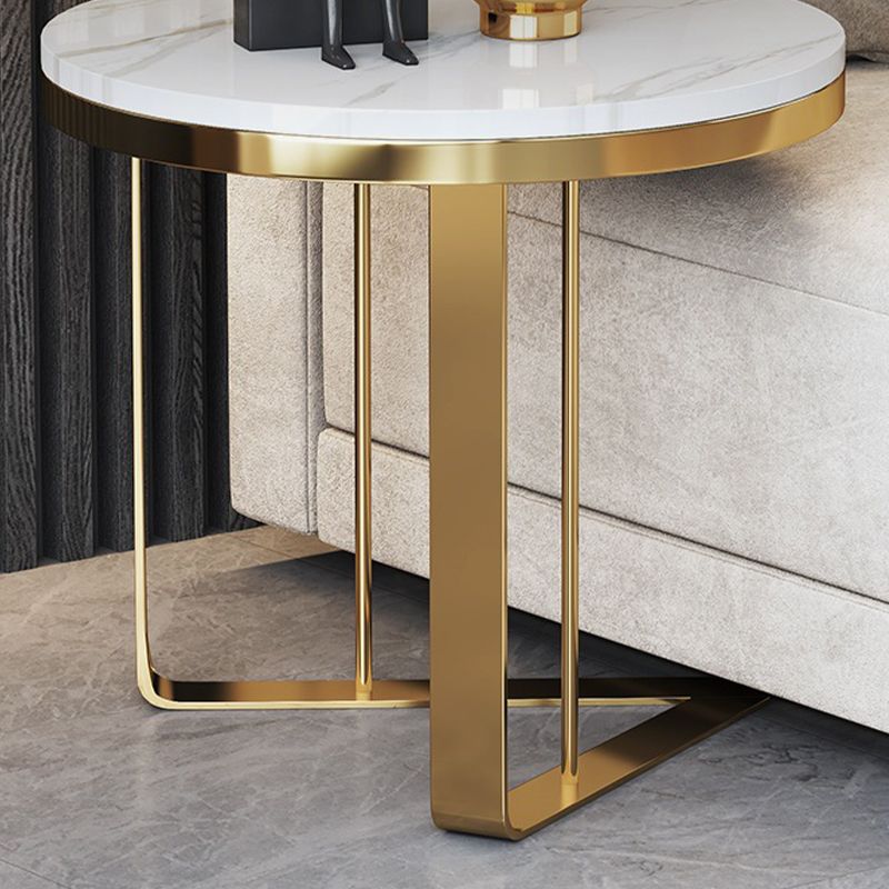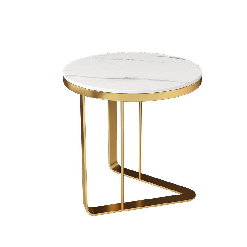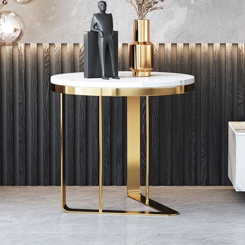 モダンな石トップサイドテーブルラウンドブラック/ゴールドメタリックCテーブル
