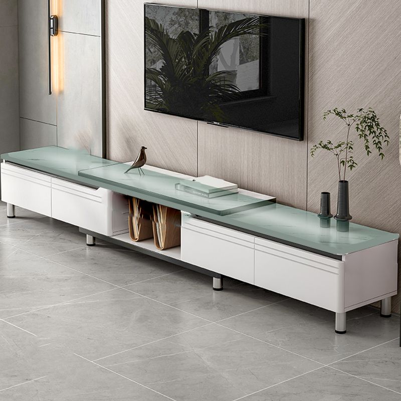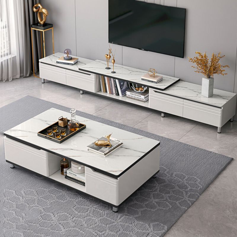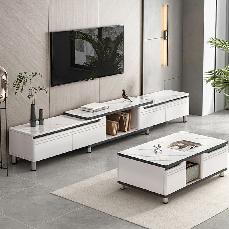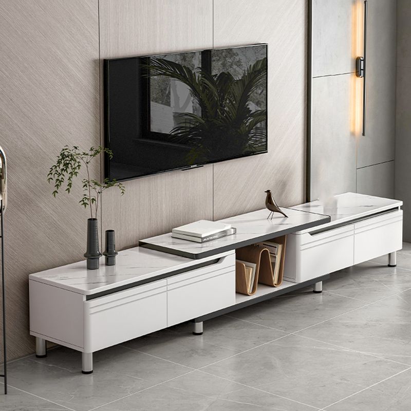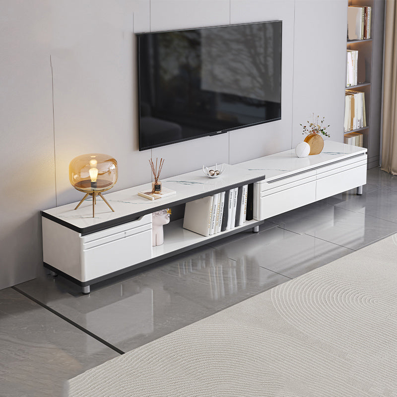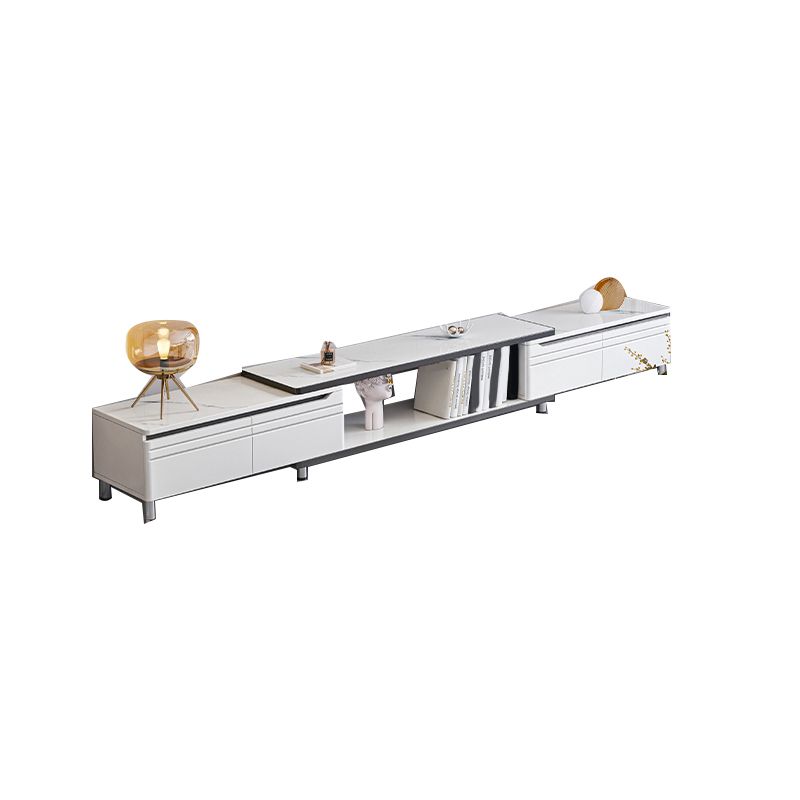 モダンなテレビコンソールストーンメディアコンソール部屋用の引き出し付きオープンストレージコンソール
