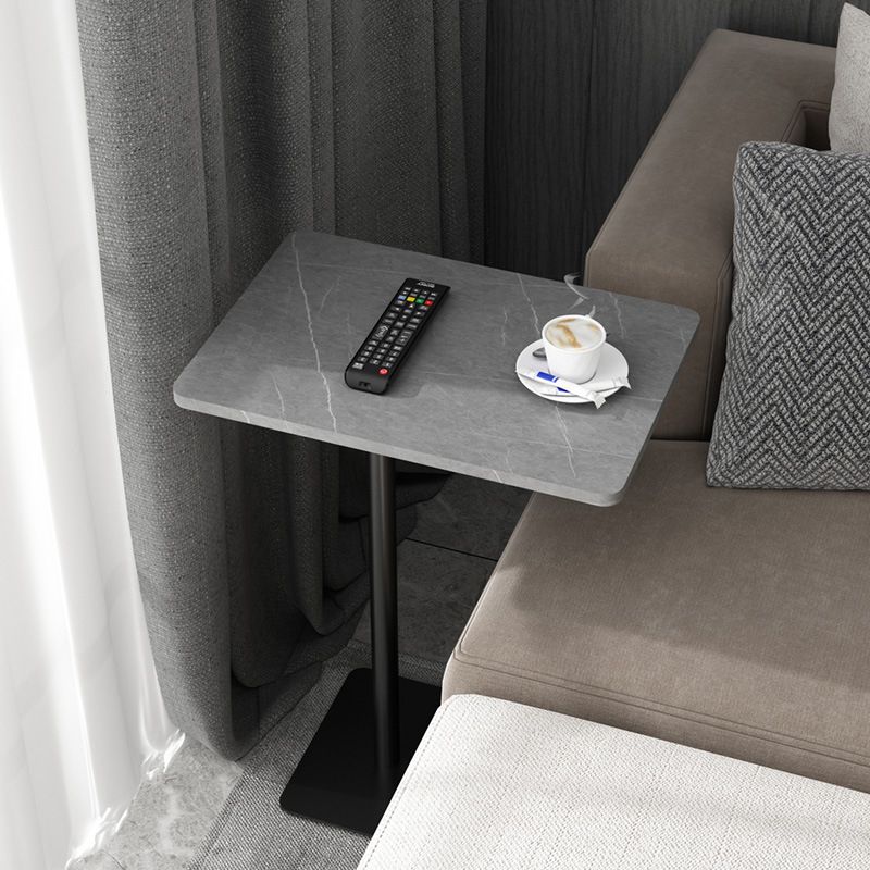 モダンスレートトップサイドテーブル長方形の金属Cサイドテーブル