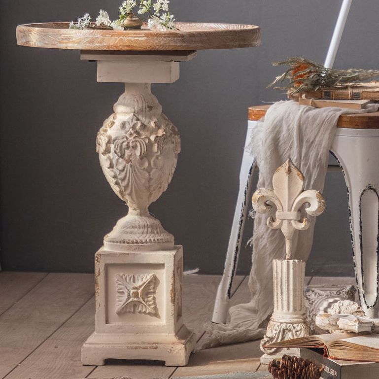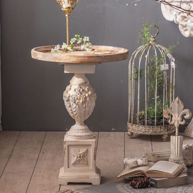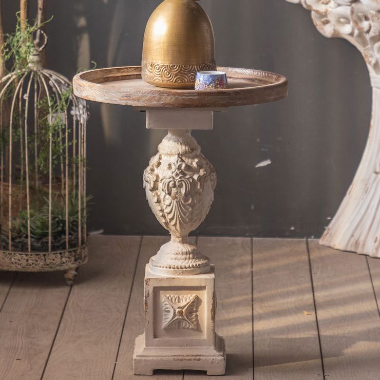 ペデスタルが苦しんでいる丸いソファサイドアクセントテーブル白い素朴なサイドエンドテーブル