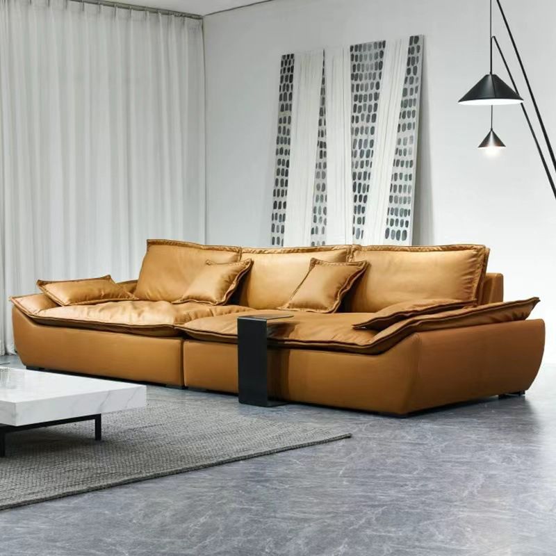 リビングルームのために茶色の枕が付いた枕トップアーム標準的なセッピーソファ