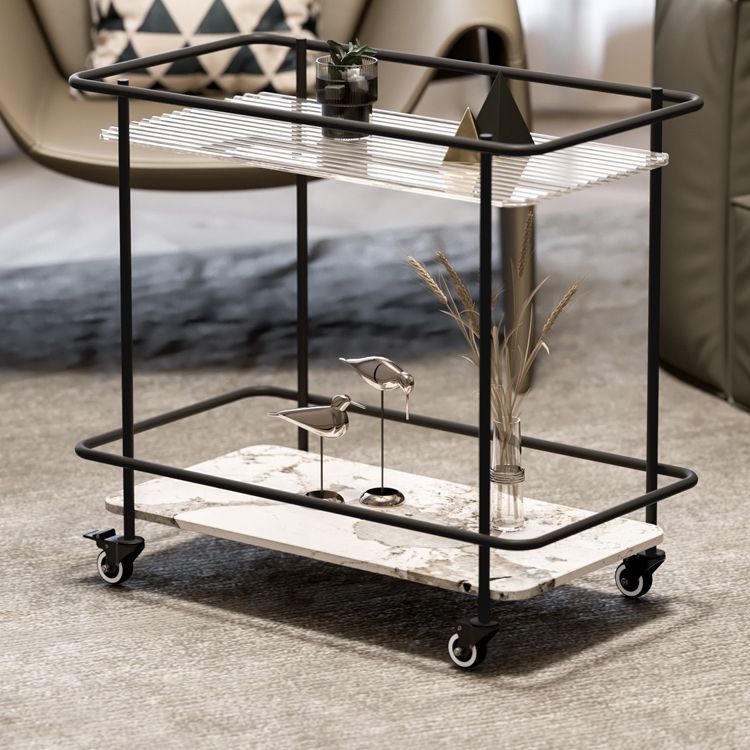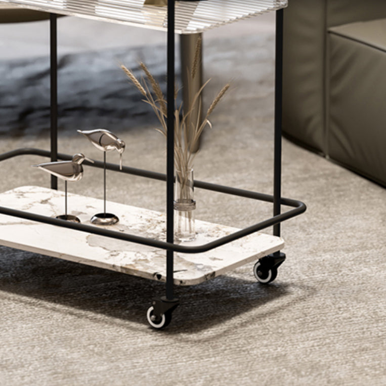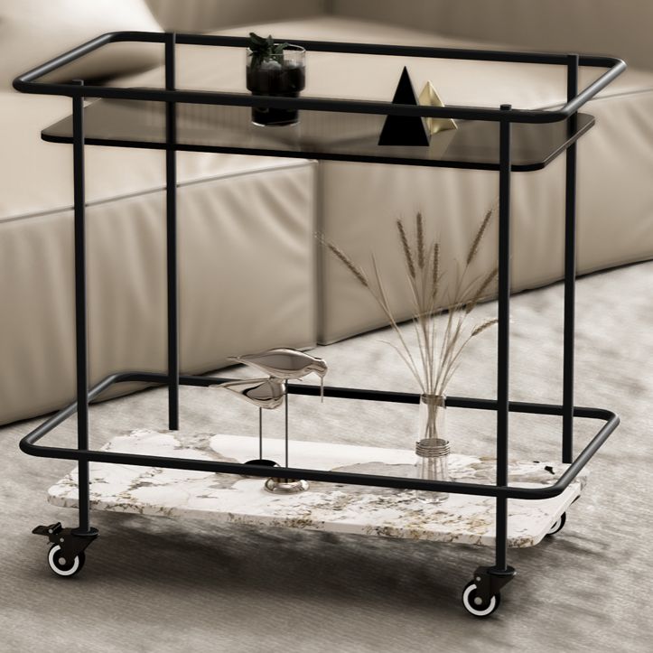 長方形のガラス上部面表23.22 "棚付きの背の高い金属ベースエンドテーブル
