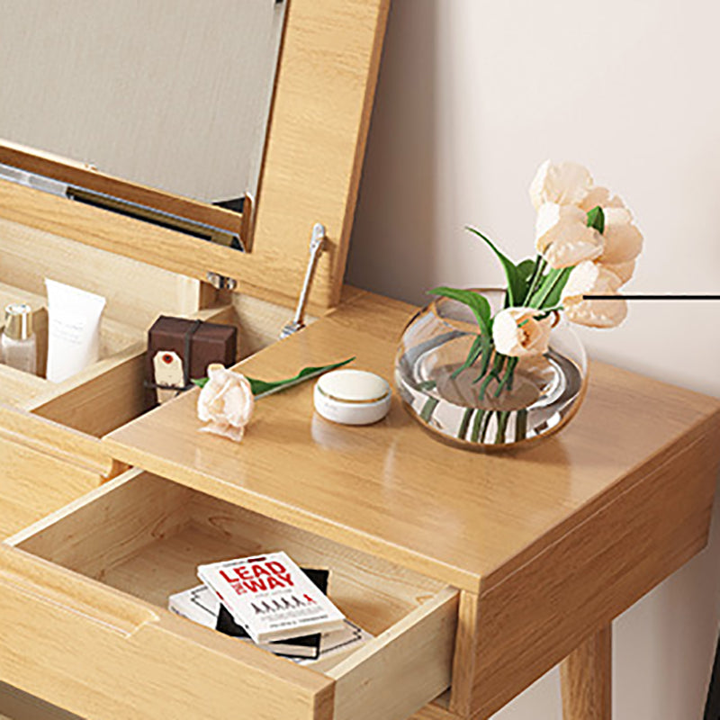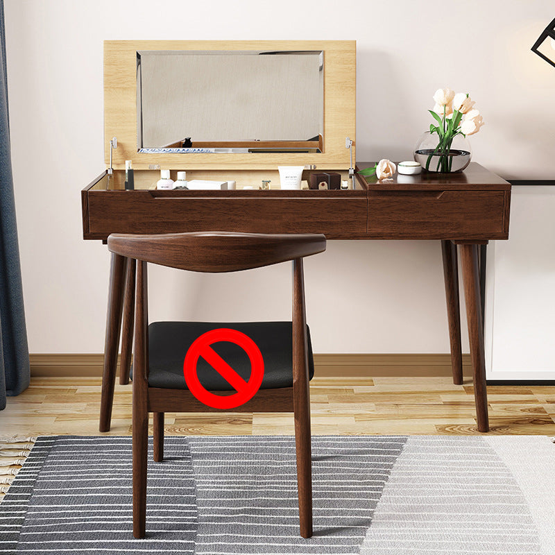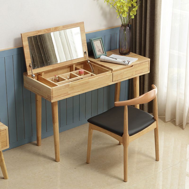 スツール1ドロワーウッドバニティテーブル付きのゴムウッドドレッシングテーブルセット