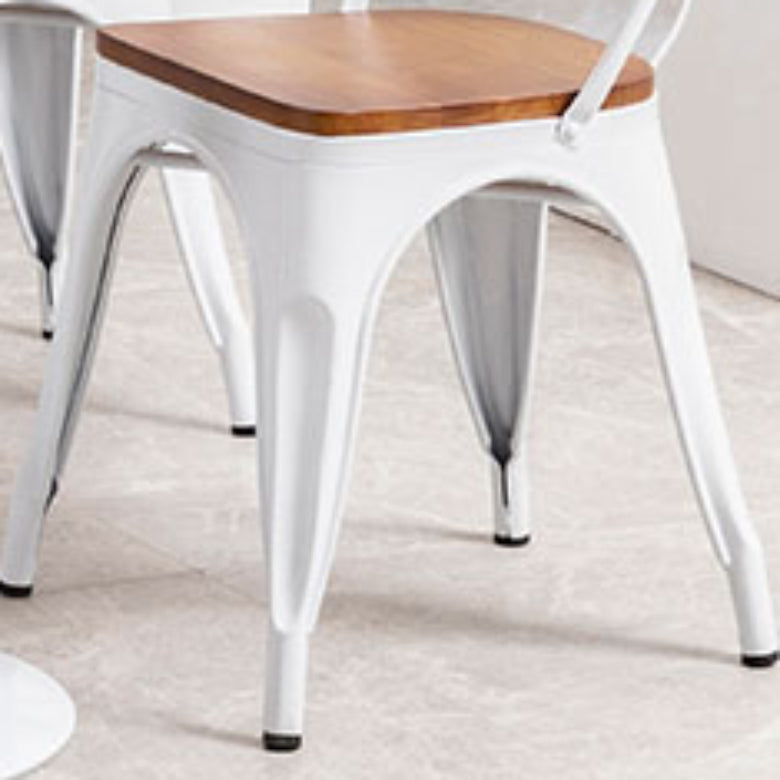 スラットバックアームチェアメタルベースのある現代のダイニングチェア
