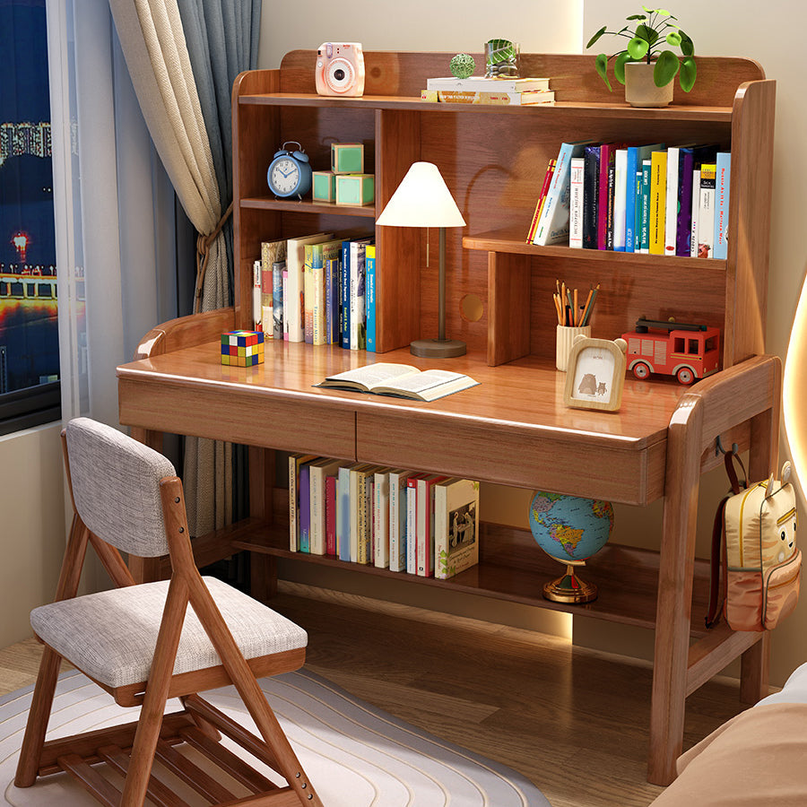 棚付きのソリッドウッド調整可能な高さのライティングデスク長方形のオフィスデスク