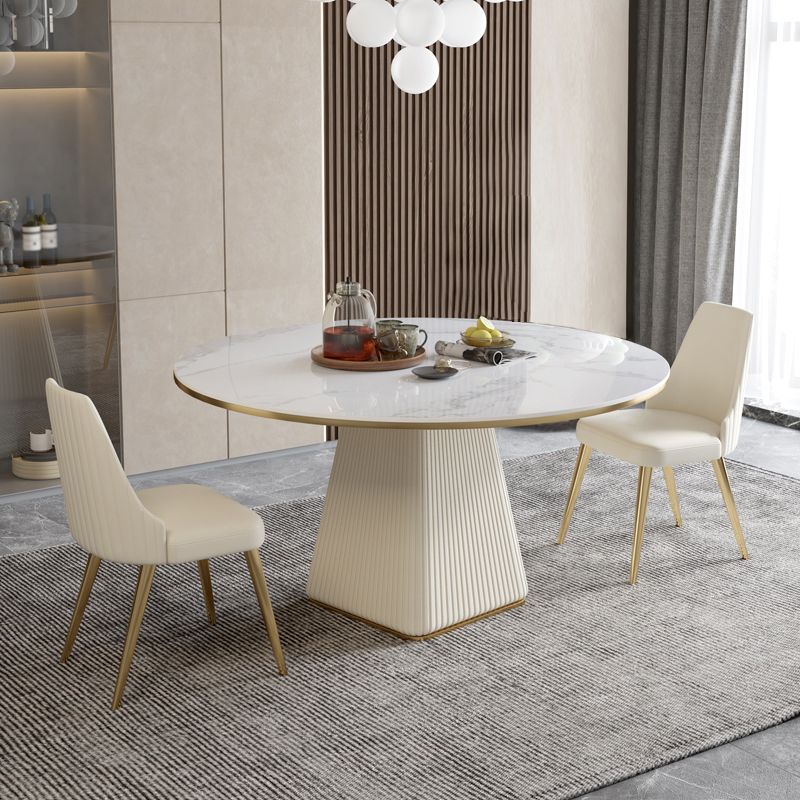 ストーンダイニングルームコレクション豪華なスタイルラウンドペデスタルダイニングテーブル