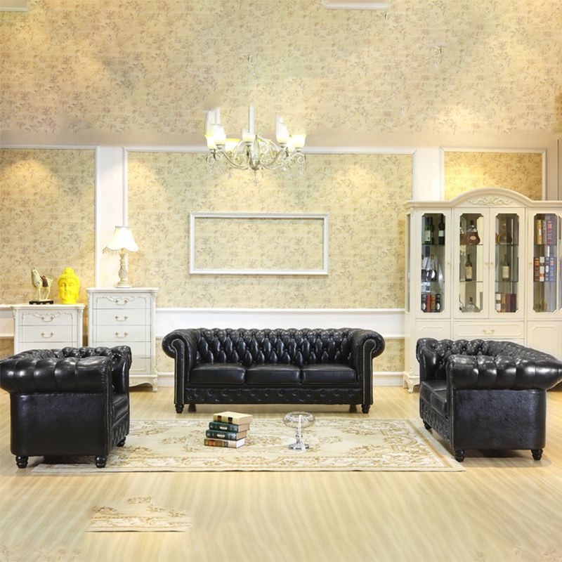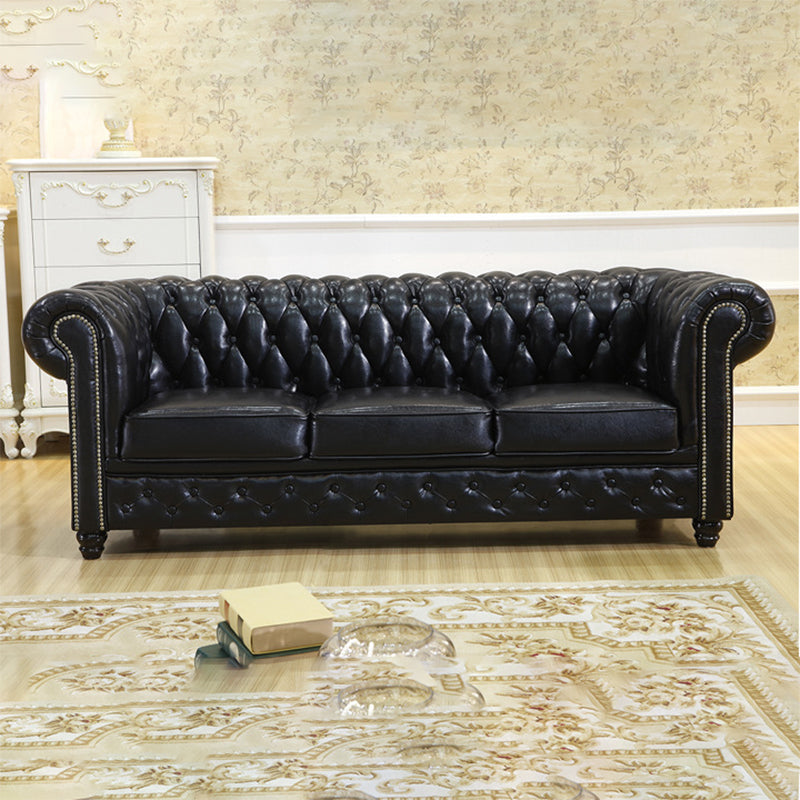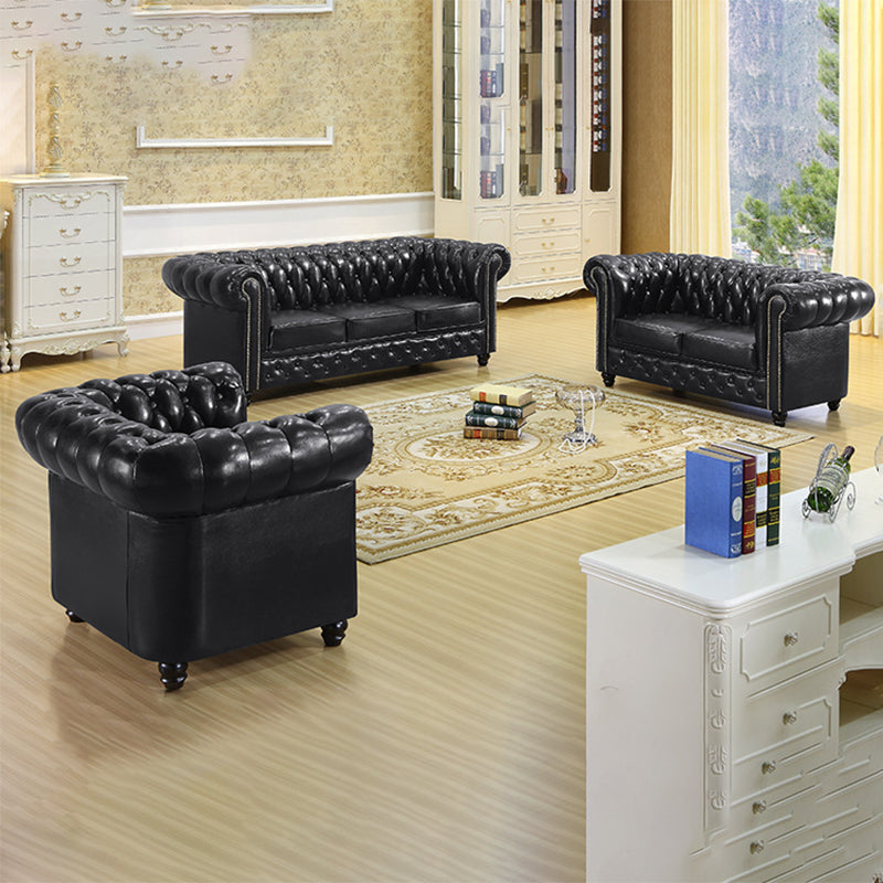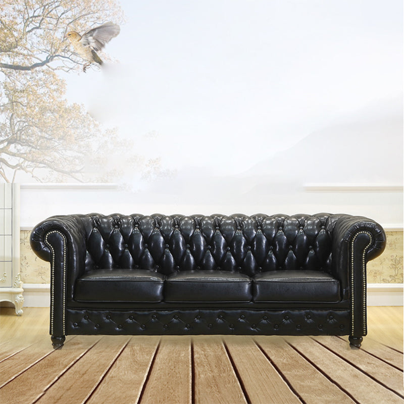 伝統的なリビングルームブラックタフトロールアーム標準座席