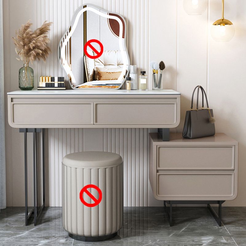 ホワイト/グレーロックプランクカウンタートップソリッドウッドフレーム金属金属ベース2/4ドロワードレッサー
