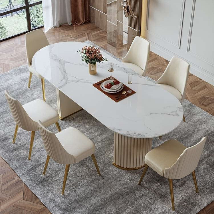 白い石のダイニングテーブルモダンな楕円形または自由なフォーム二重台付きの白いダイニングテーブル