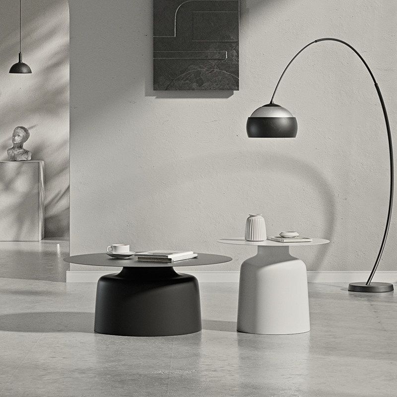 15.7 "/18.5"背の高い鉄の台座白 /黒い丸いコーヒーテーブル
