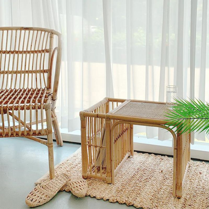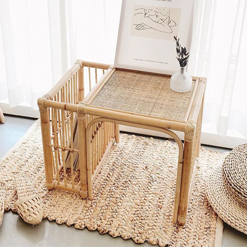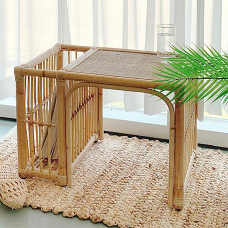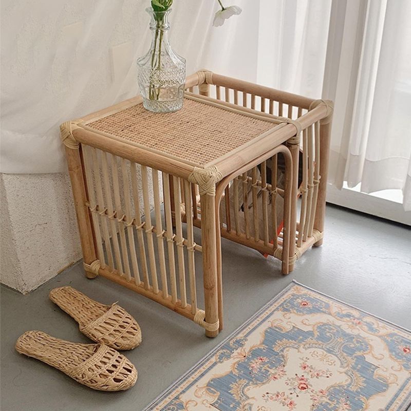 15.74 "背の高いラタンエンドテーブル長方形のナチュラルアクセントサイドテーブル