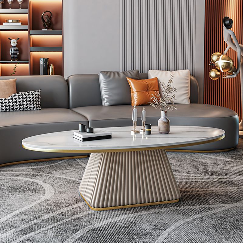 15.7 "背の高い鉄の台座黒/白い楕円形のスレートトップコーヒーテーブル