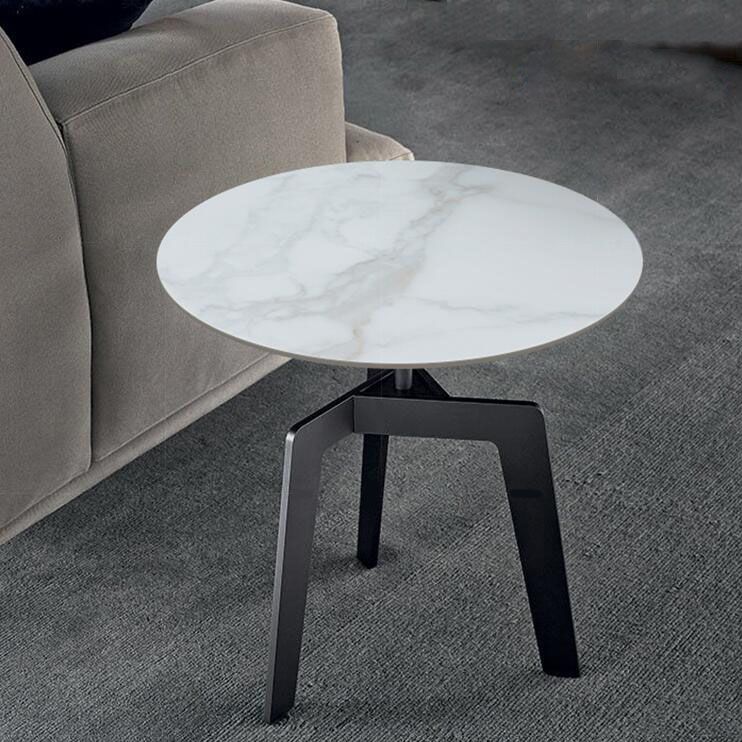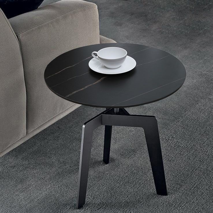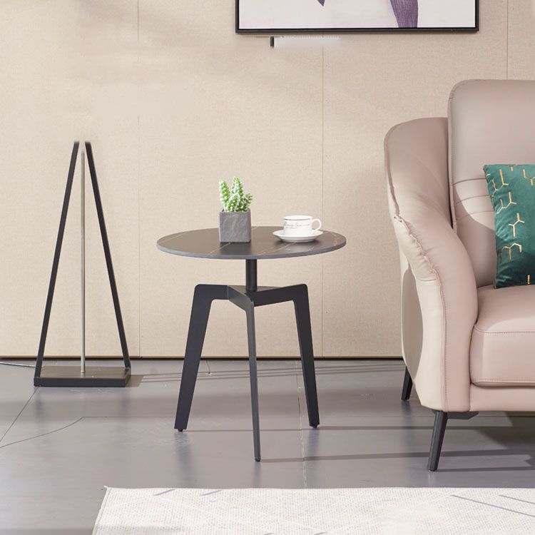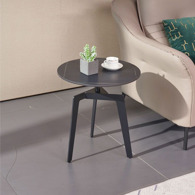 21.65 "/23.62"背の高いスチール3脚エンドテーブルモダンラウンドスレートトップサイドテーブル