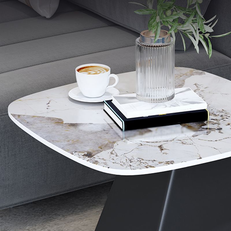 23.6 "背の高いモダンな鉄のサイドテーブル台座長方形のフェイクマーブルトップエンドテーブル
