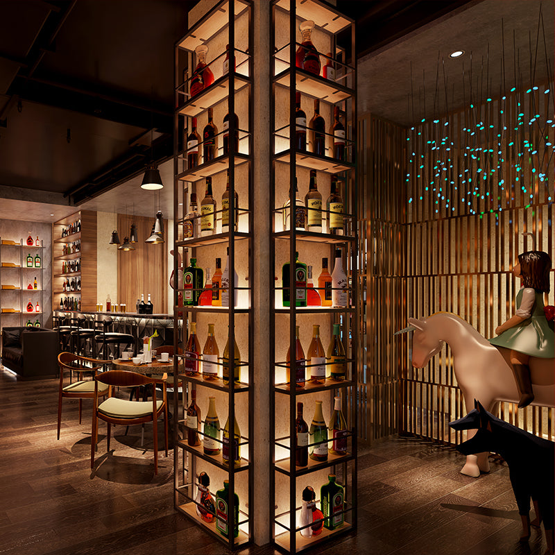 黒いモダンワインボトルホルダーフロアウッドと金属製ボトルホルダー5.9 "幅