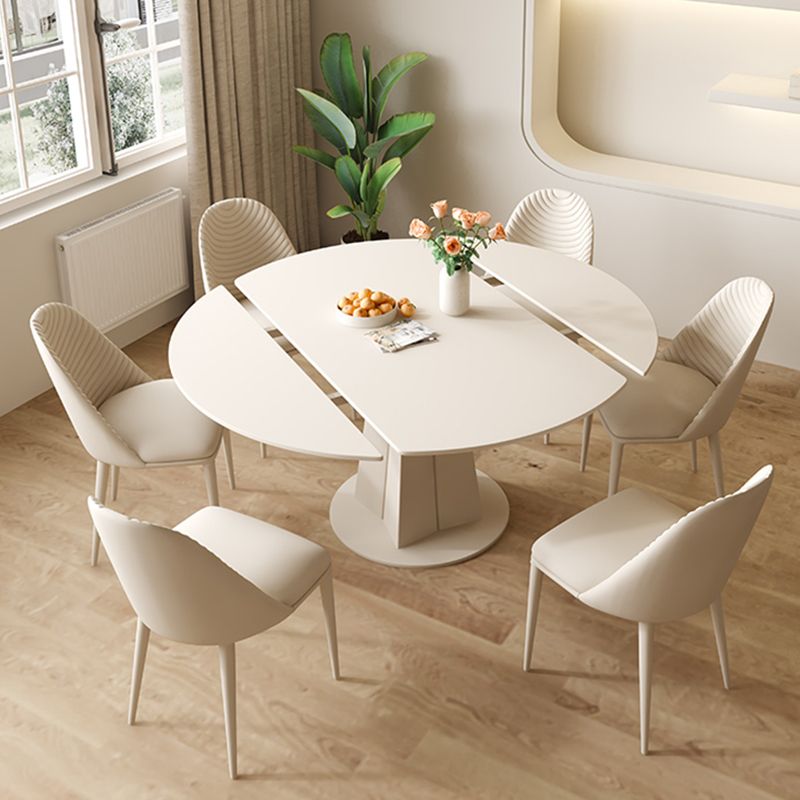 コンテンポラリー1/2/4/5/7ピース家具丸い石のダイニングセットホワイト