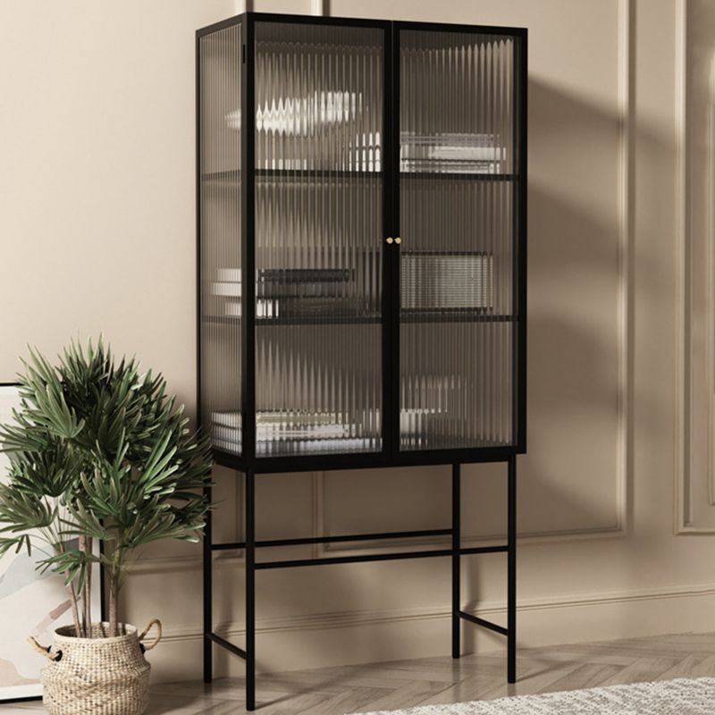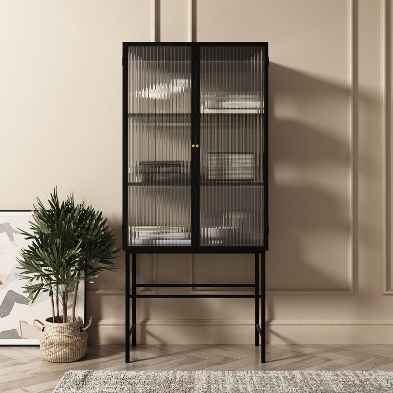 ガラスドア付きの現代のキュリオキャビネットメタルビュッフェキャビネット