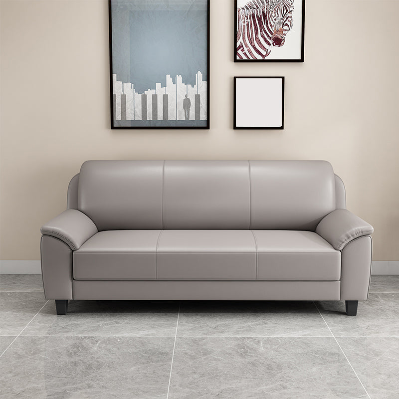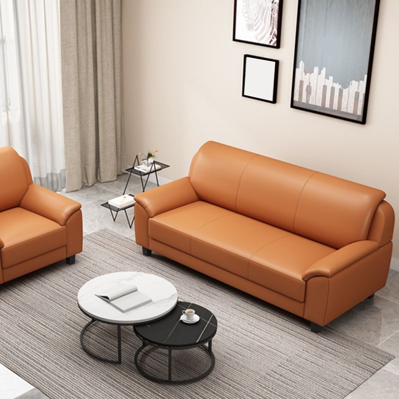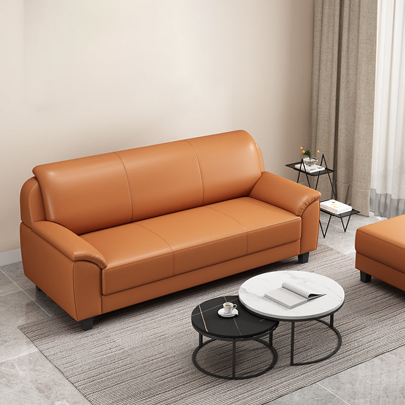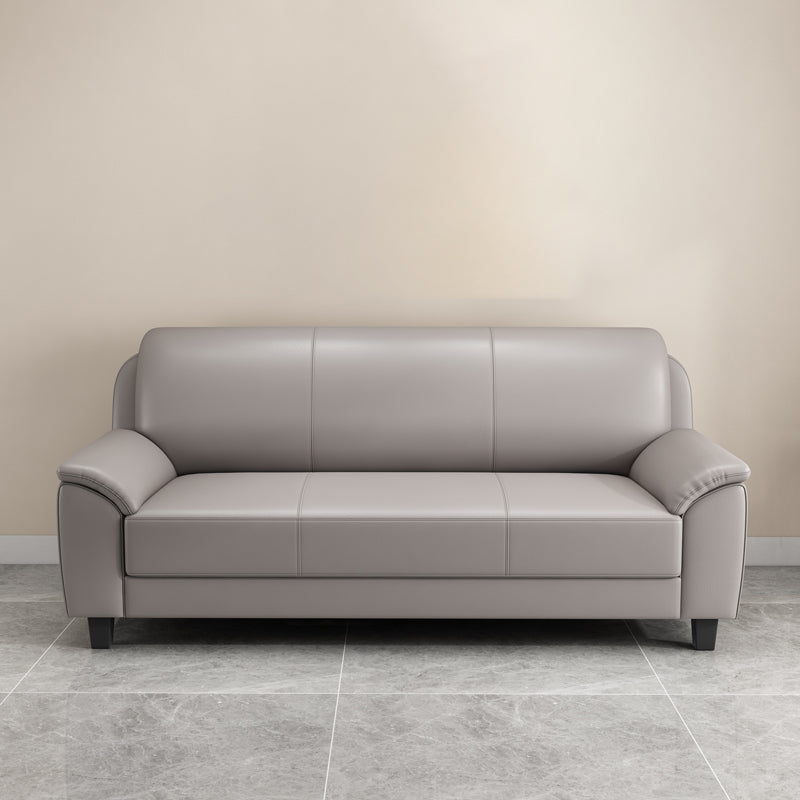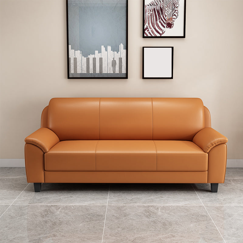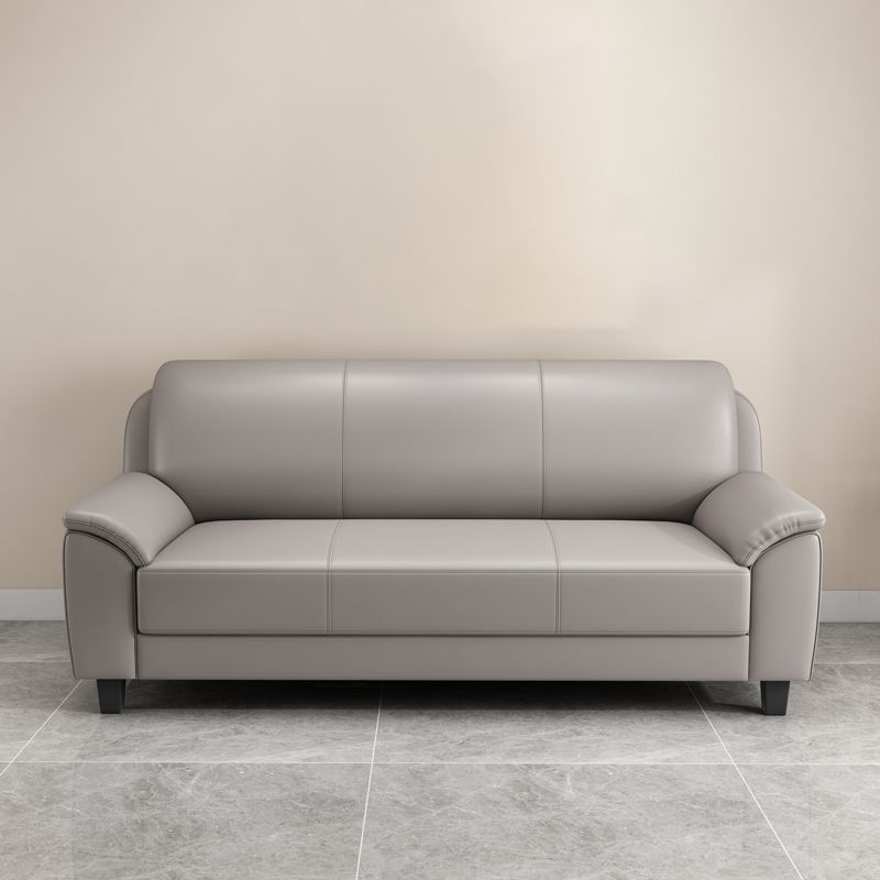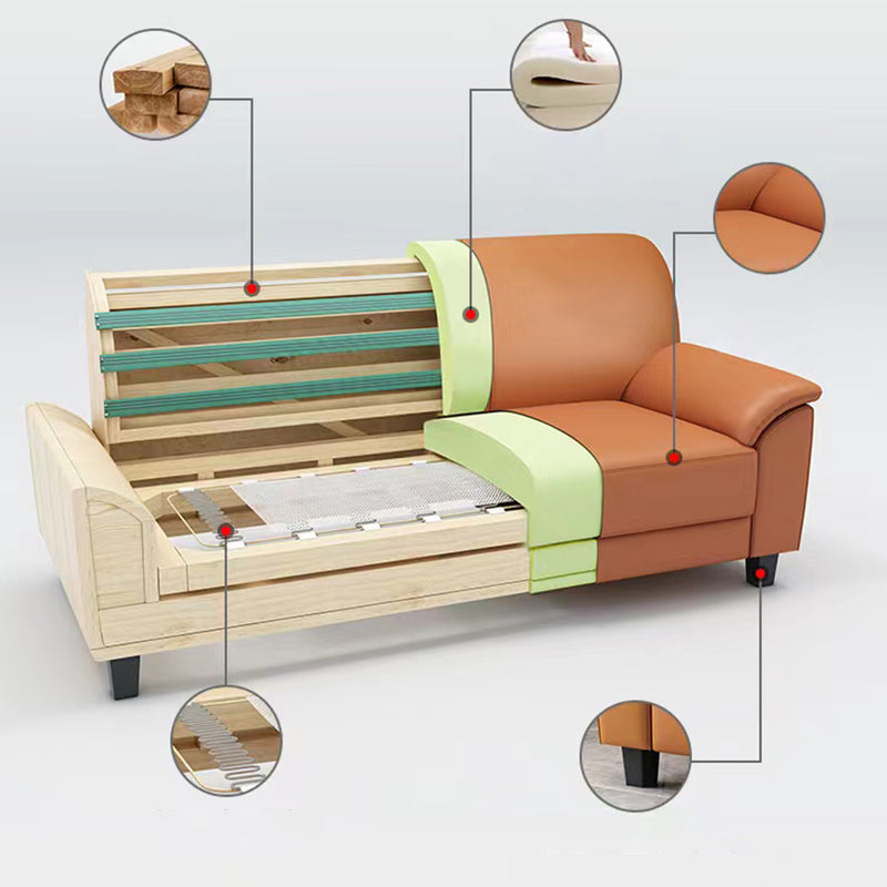 コンテンポラリーフェイクレザーソファウッドフレームピロートップアームソファ