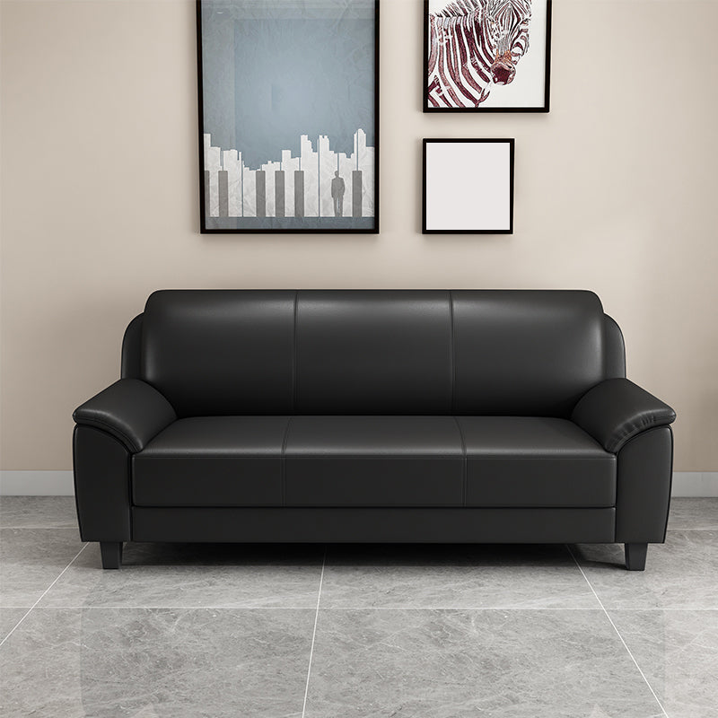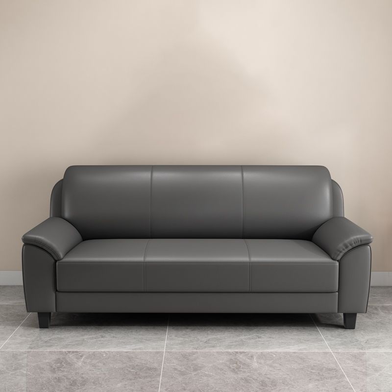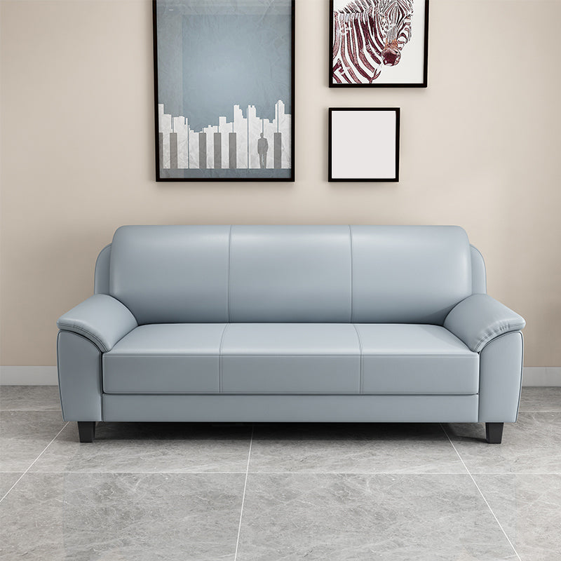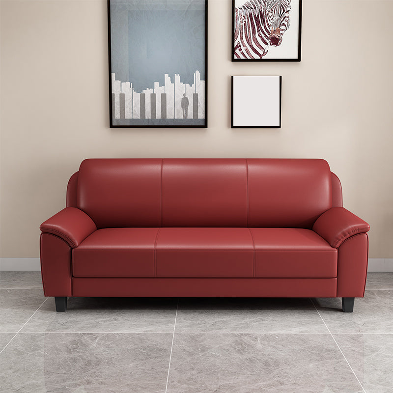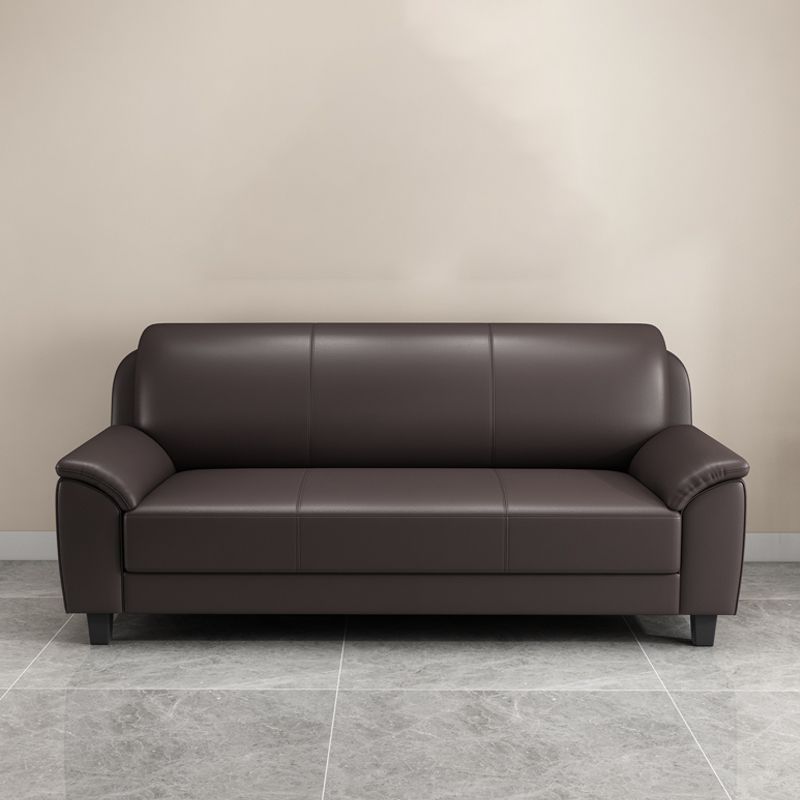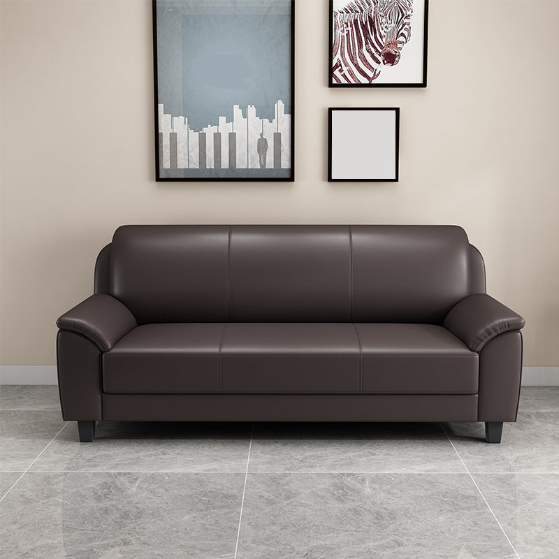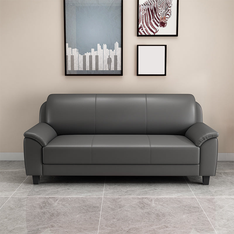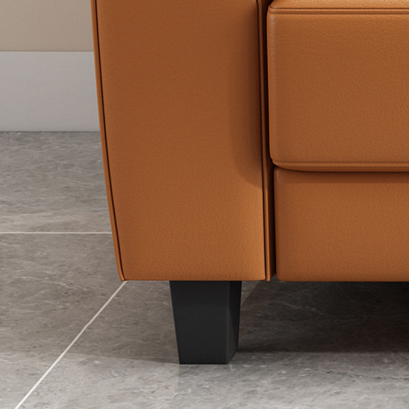 コンテンポラリーフェイクレザーソファウッドフレームピロートップアームソファ