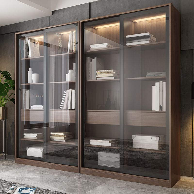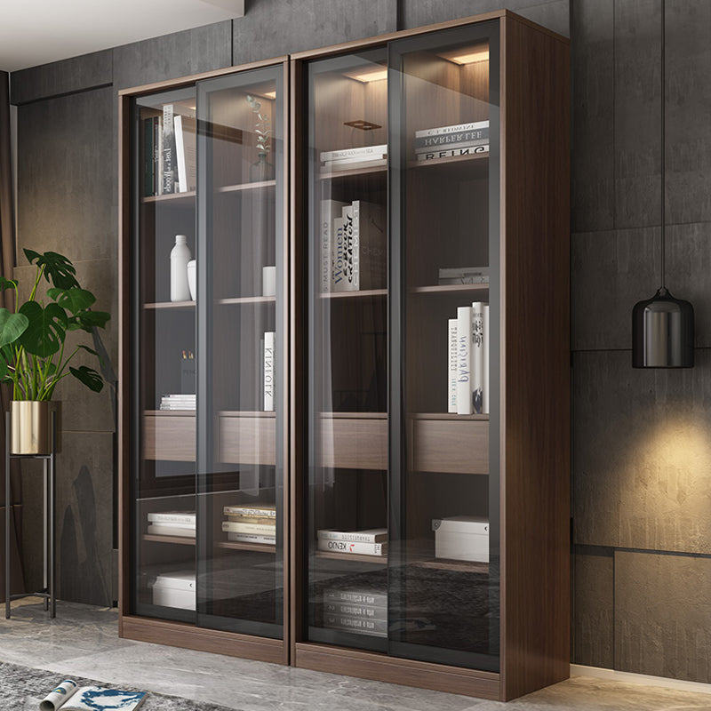 現代のフェイクウッドディスプレイキャビネットスライドドアリビングルーム用の収納キャビネット