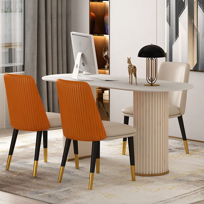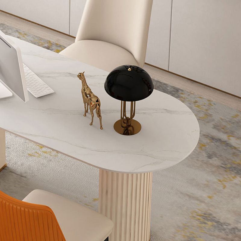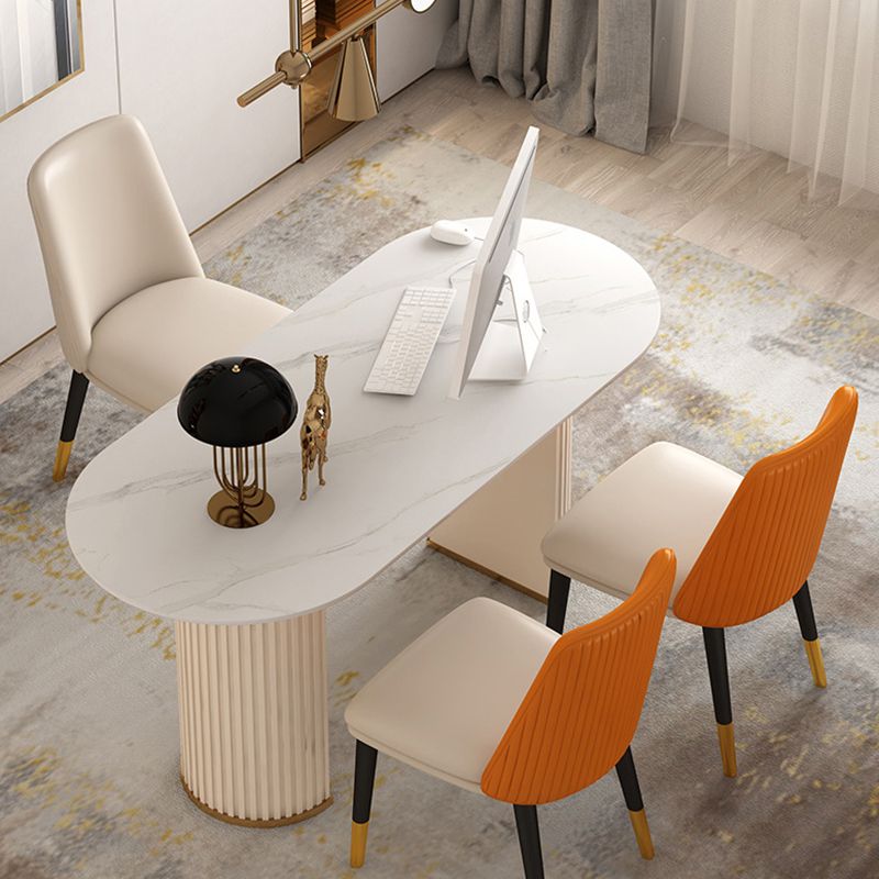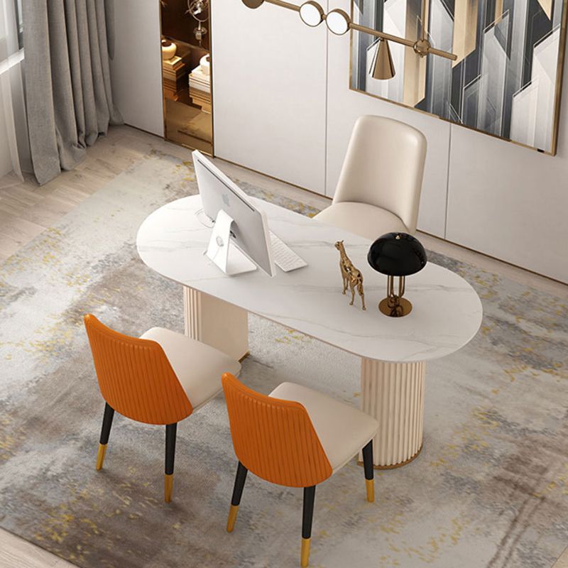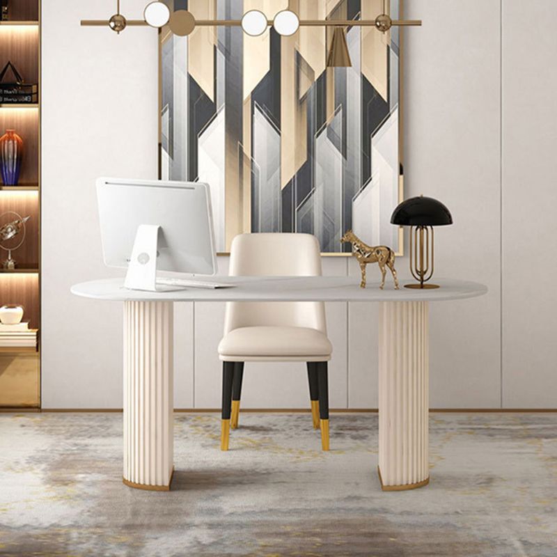 現代のオフィスデスクは、オフィス用の楕円形のラップトップテーブルをミラーリングしています