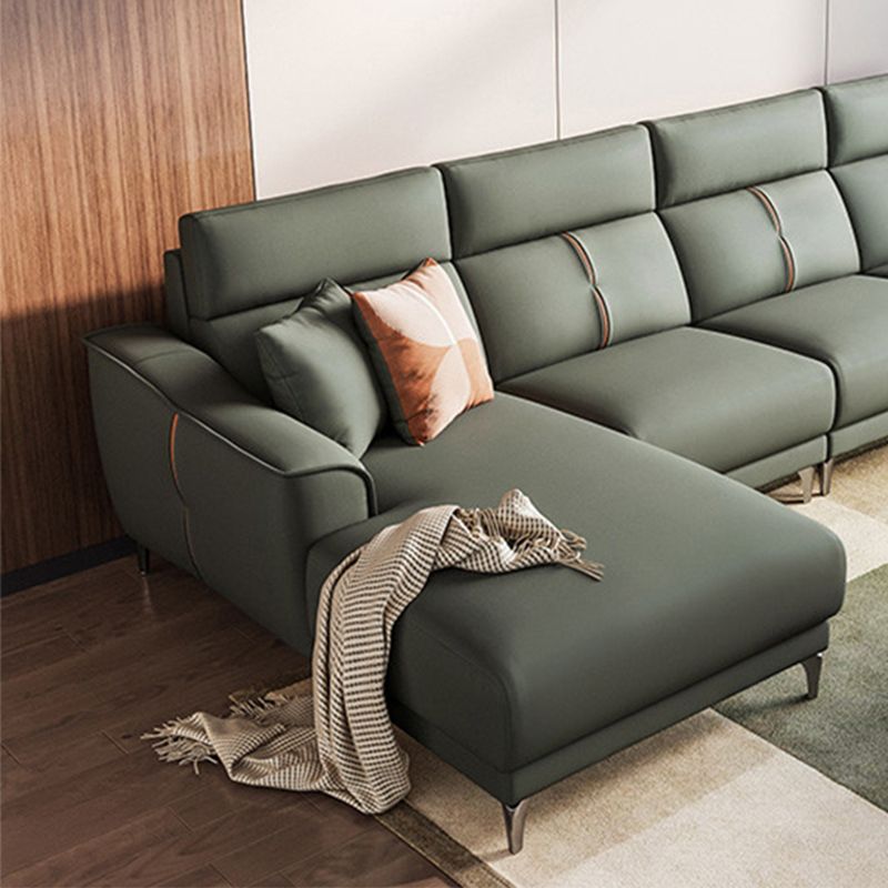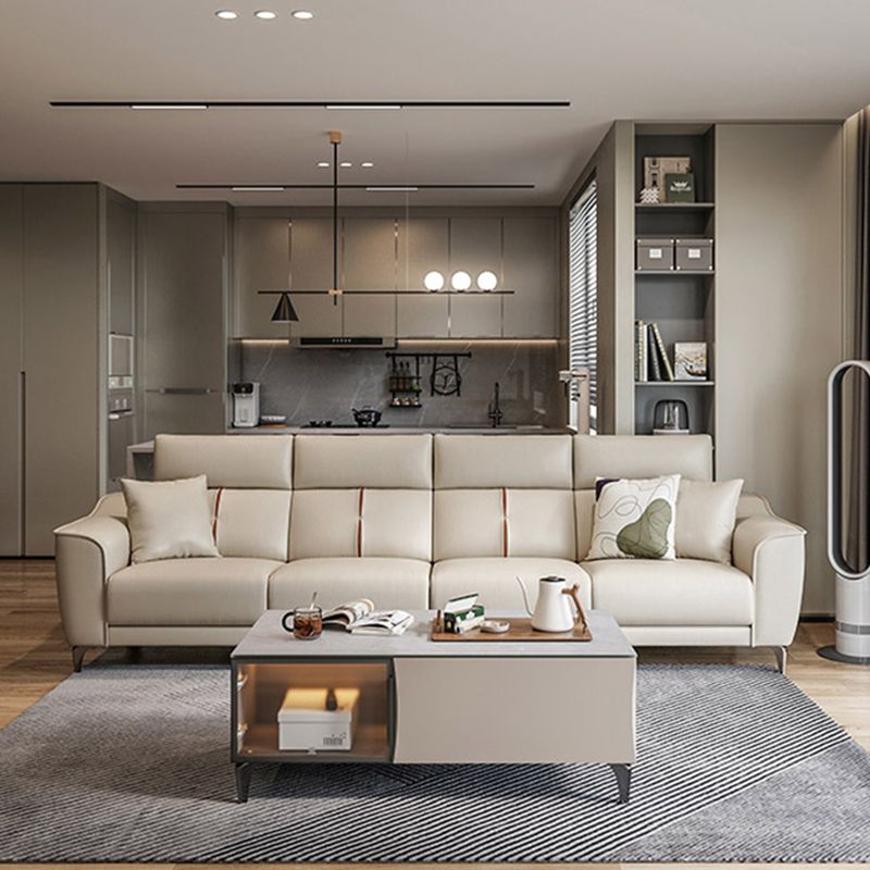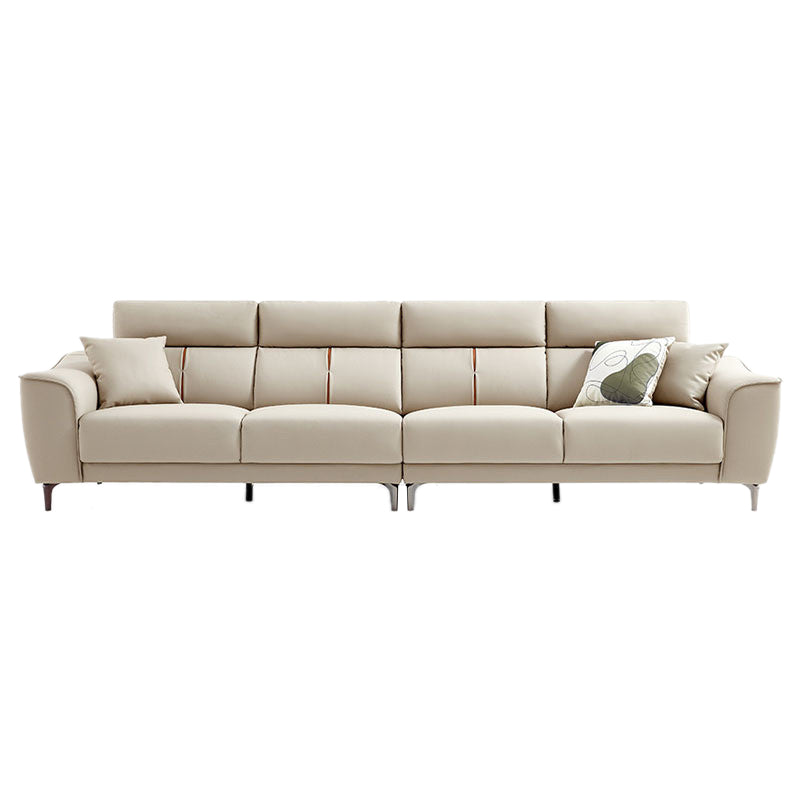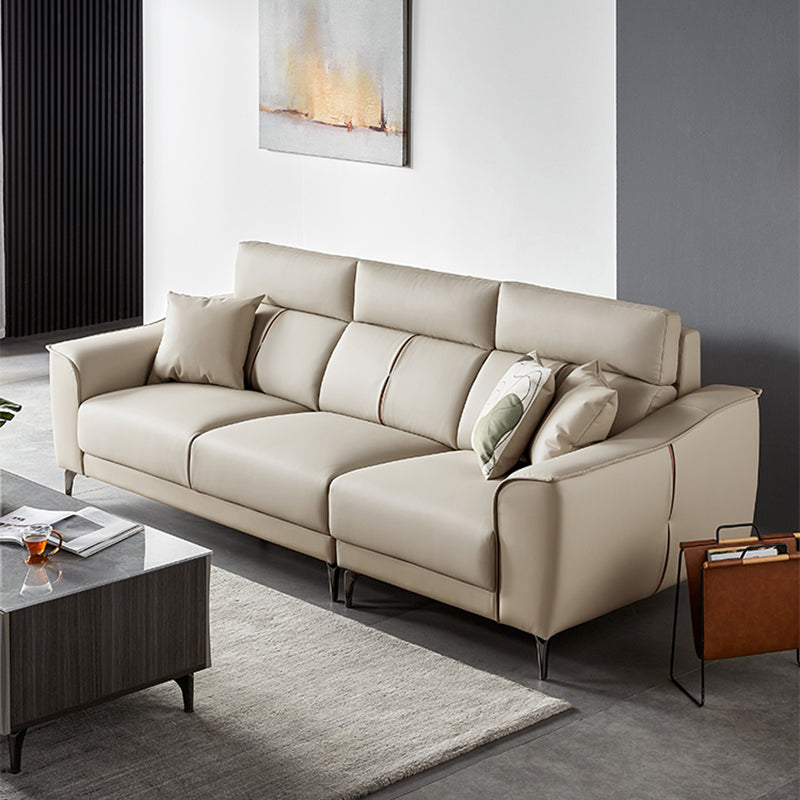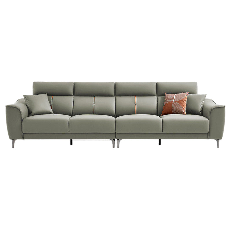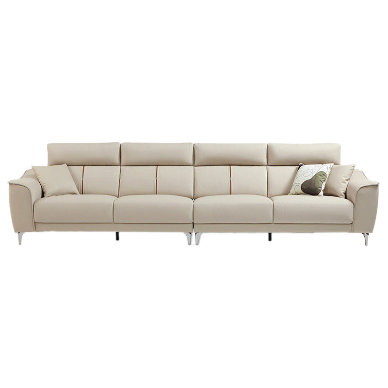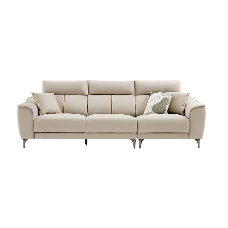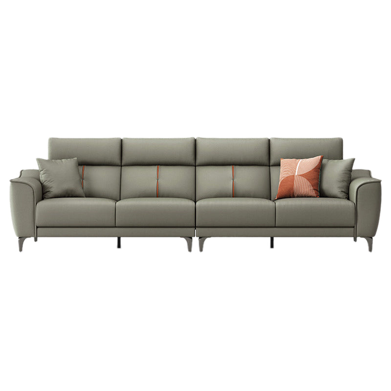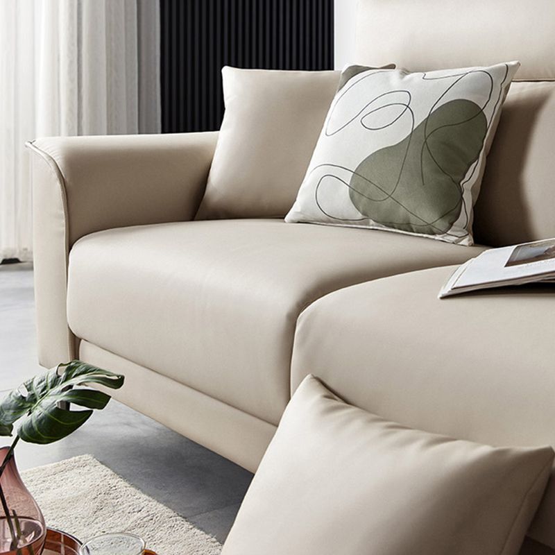 コンテンポラリースタイルのフェイクレザーソリッドカラー縫製枕バックソファ