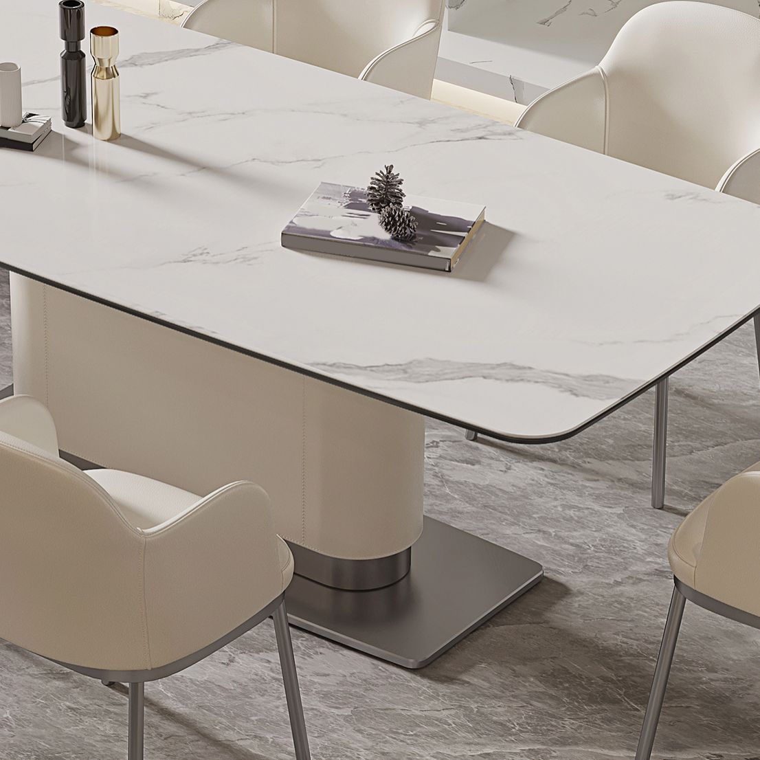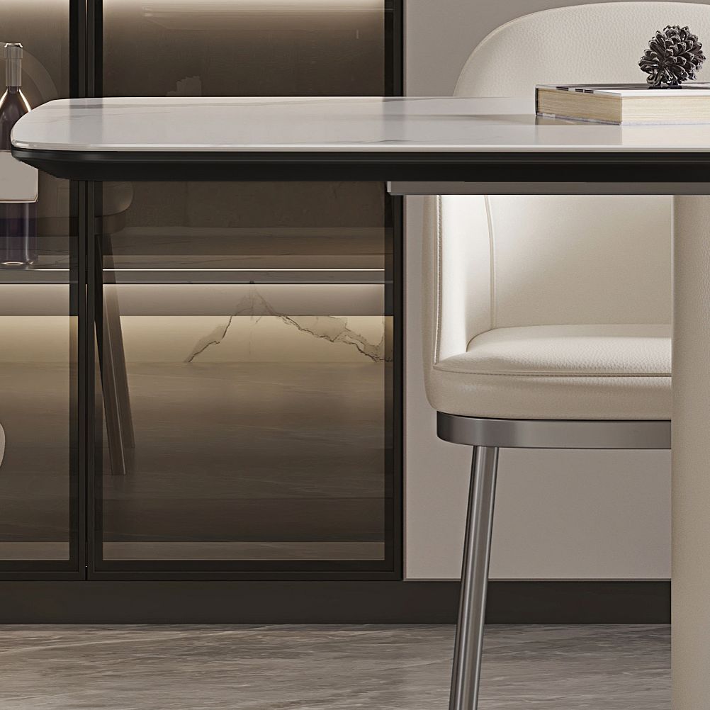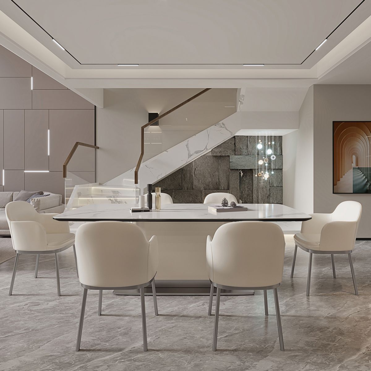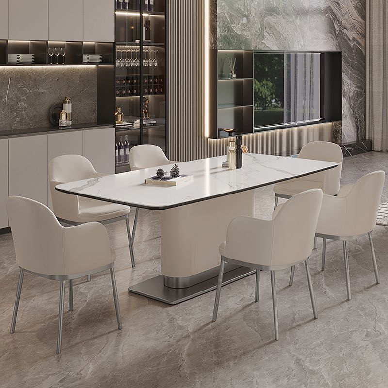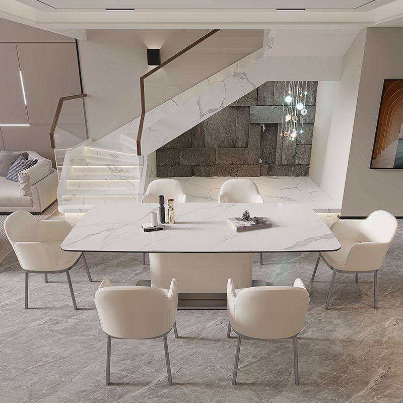 コンテンポラリーホワイトストーンダイニングセット1/4/7ピースアームチェア付きダイニングテーブルセット
