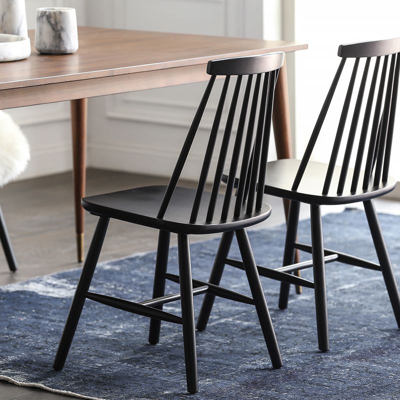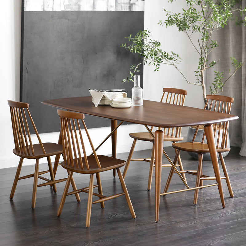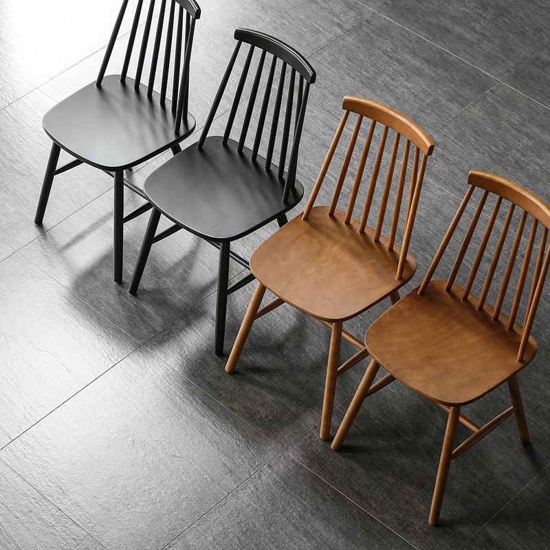 ダイニングルームアームレスダイニングチェアホームスラットバックソリッドウッドチェア