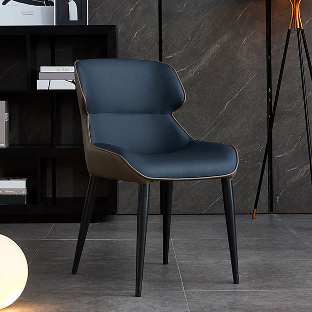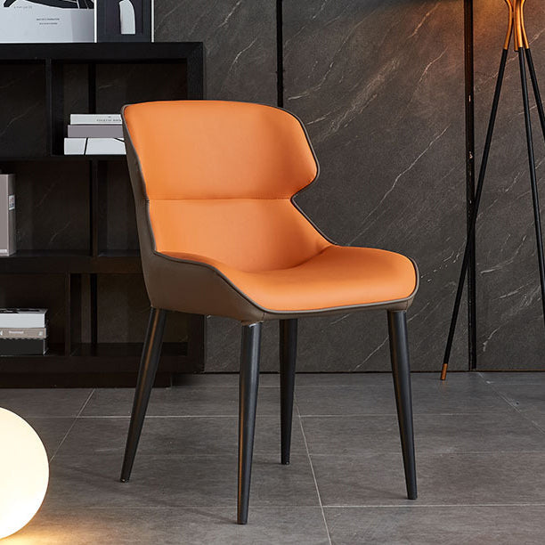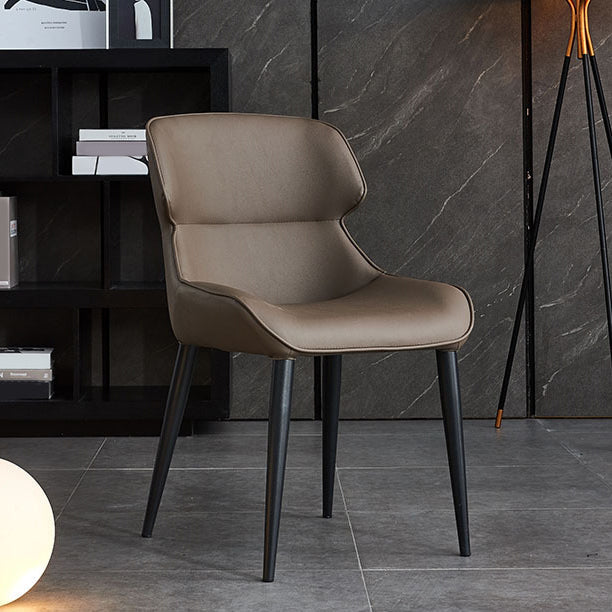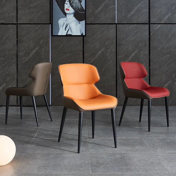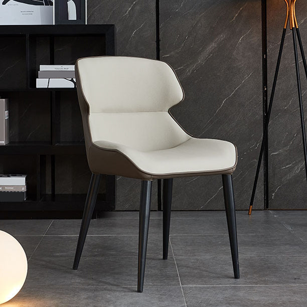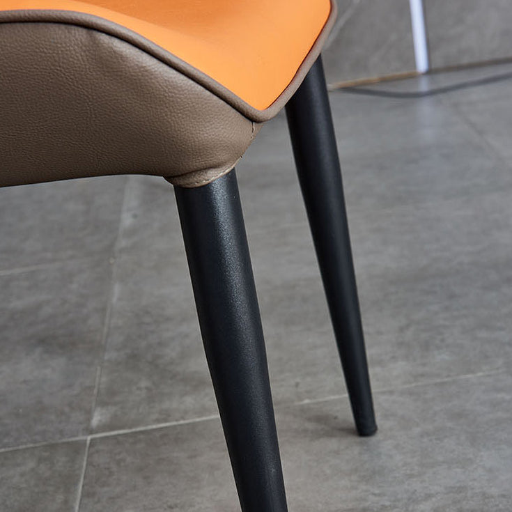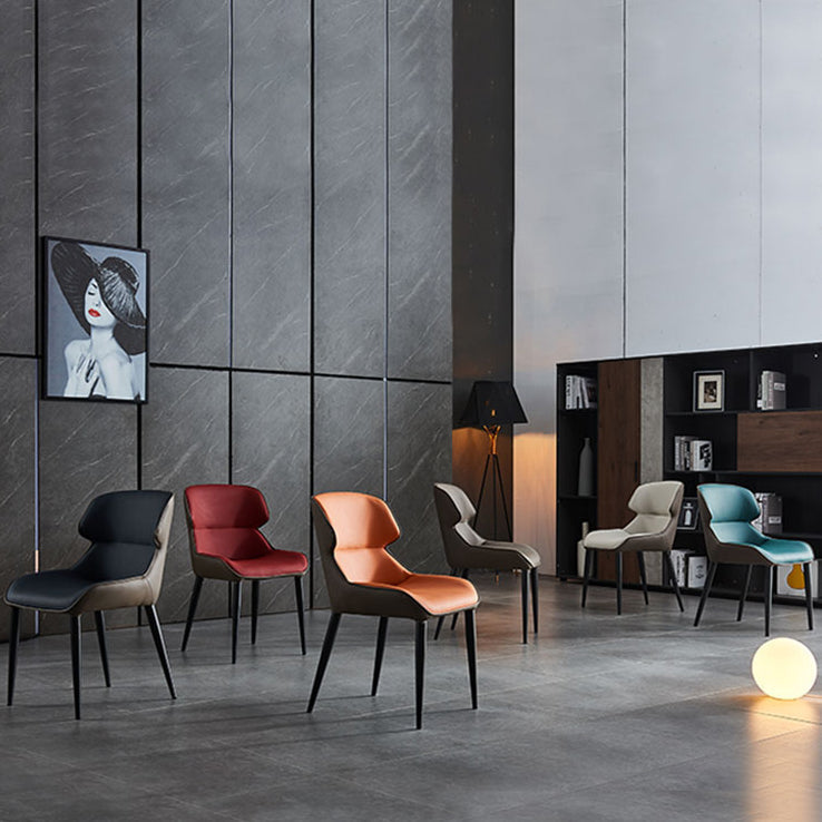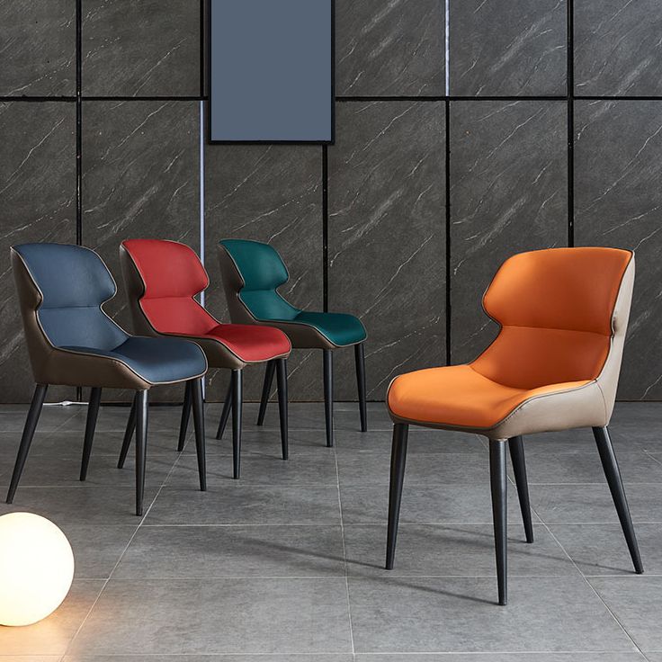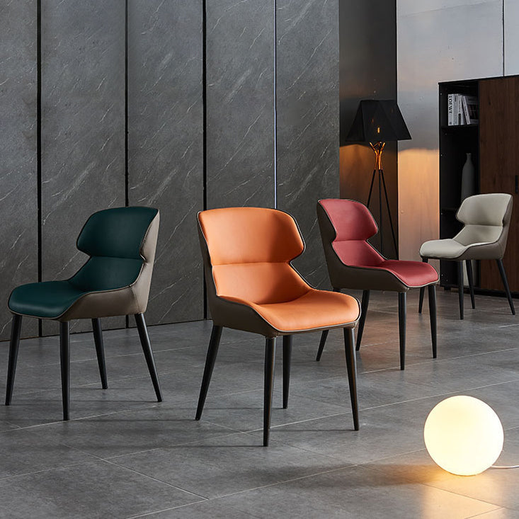 フェイクレザーとメタルアームレスダイニングチェアモダンサイドチェア