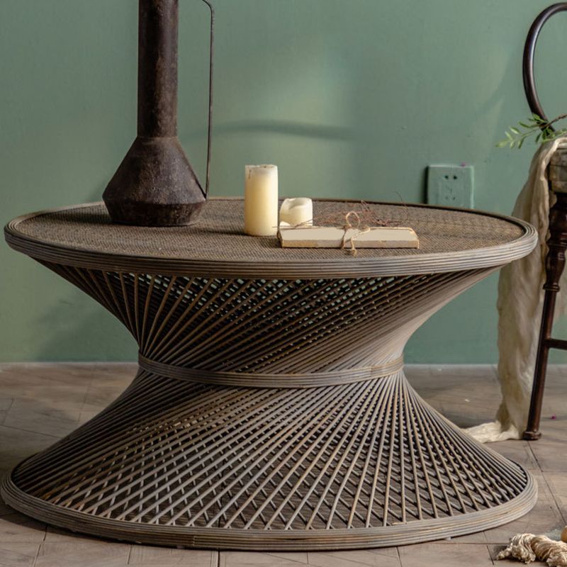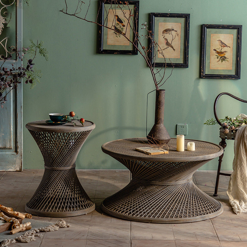 リビングルーム用の丸い熟成フレームベースを備えたフランスのカントリースタイルのサイドテーブル