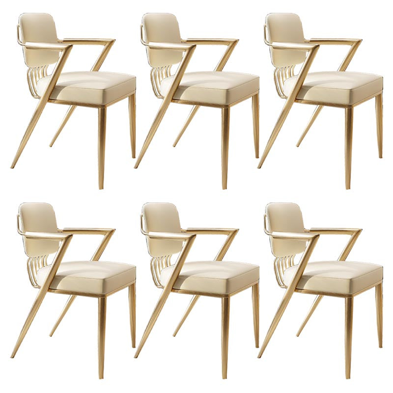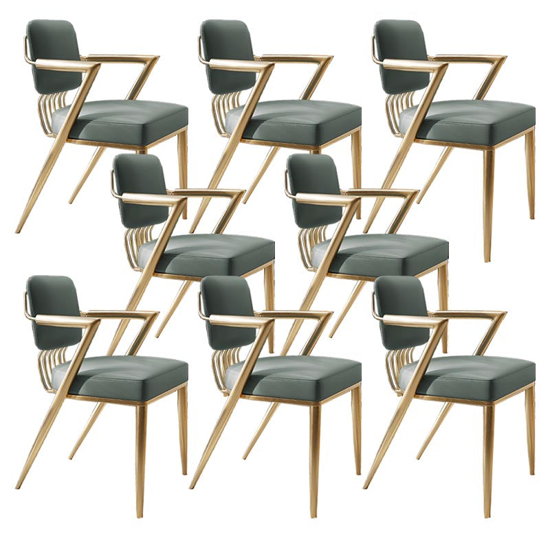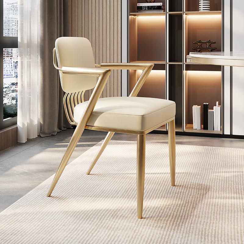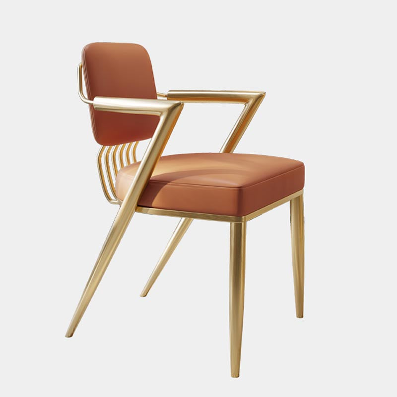 グラム布張りのダイニングアームチェアレザーレザーダイニングチェアと金色の脚