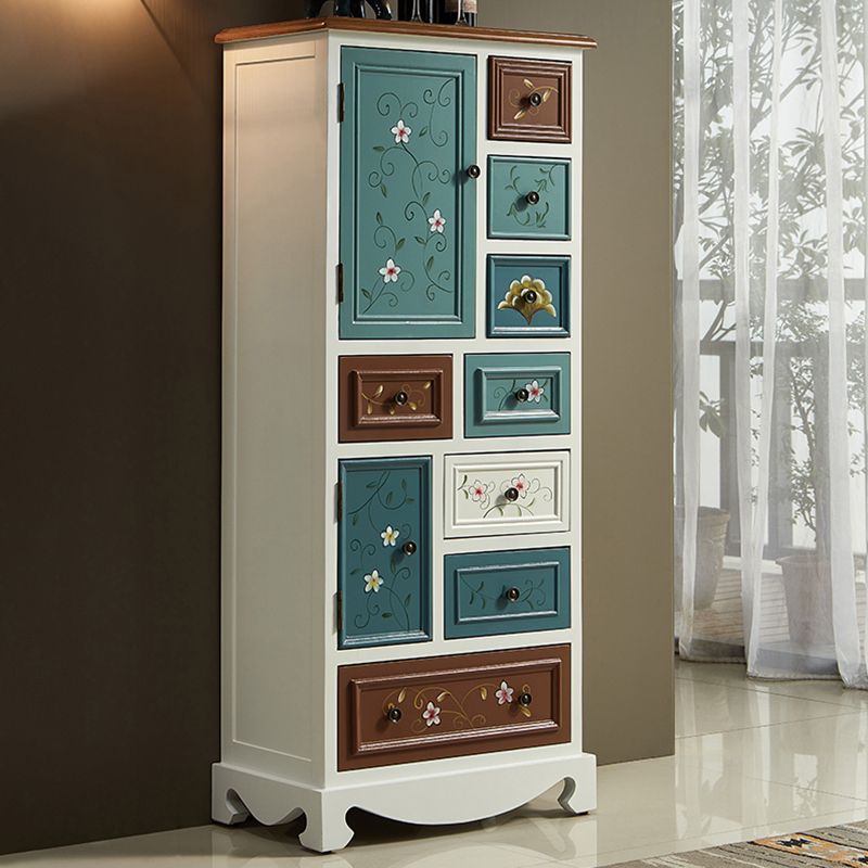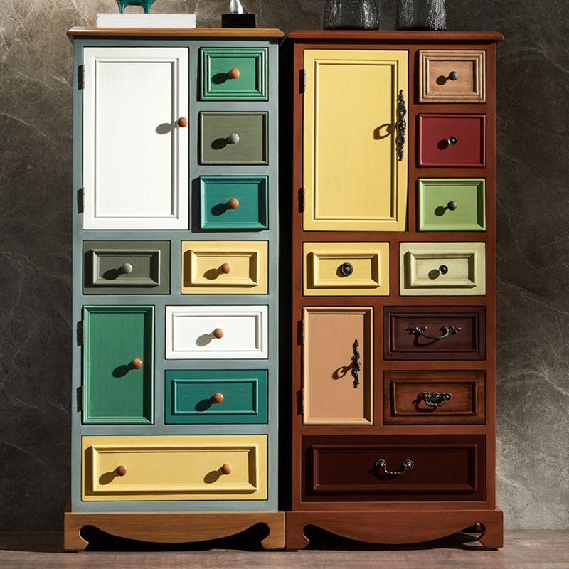 8つの引き出しと2つのドアを備えた産業アクセントキャビネット