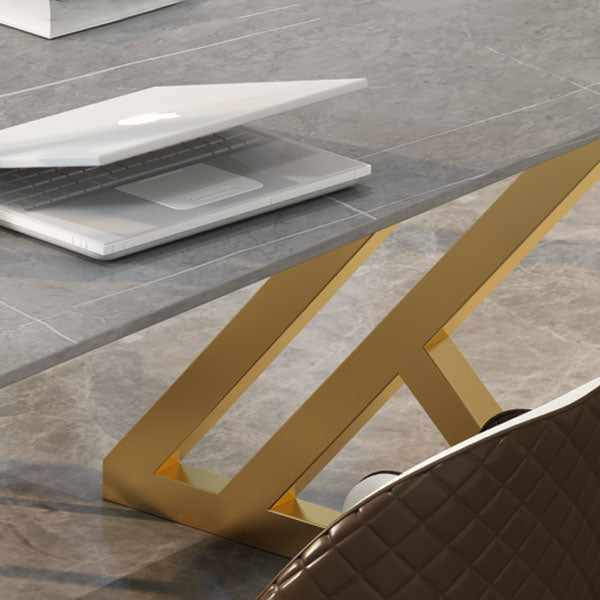 工業スタイルのライティングデスク長方形の焼結石オフィスデスクと金属ベース