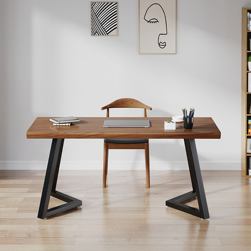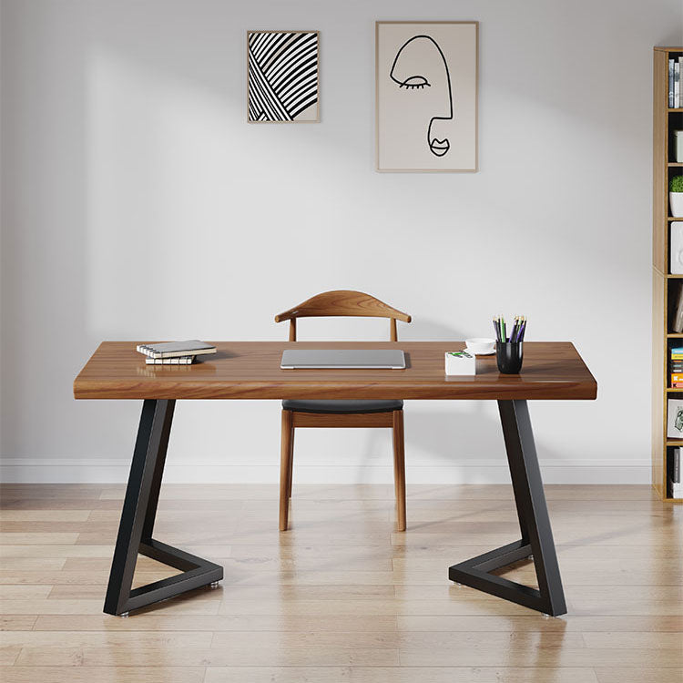 産業スタイルのライティングデスクホーム用の金属ベース付きソリッドウッドオフィスデスク