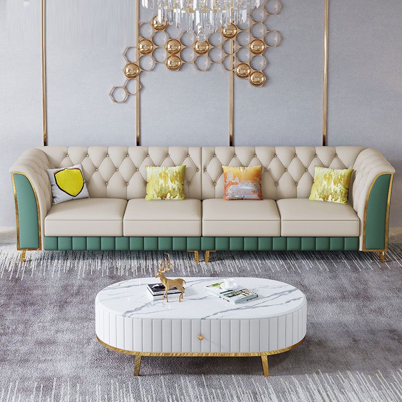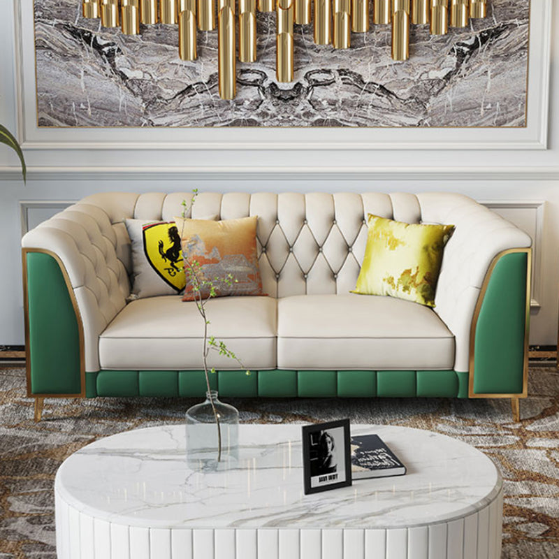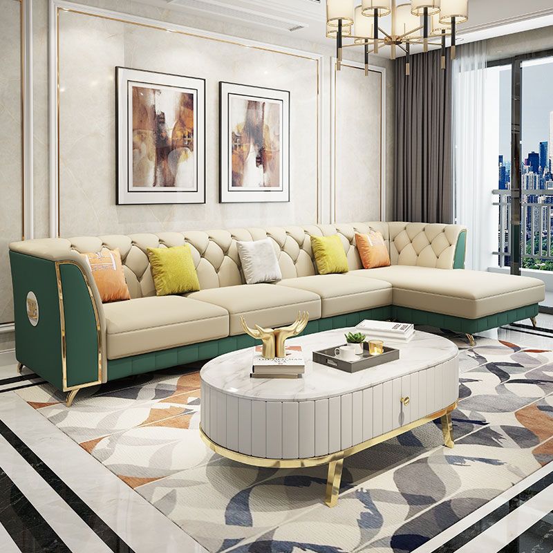 革タキシードアームセクショナルソファ33.46 "房状のスプリットバックソファ