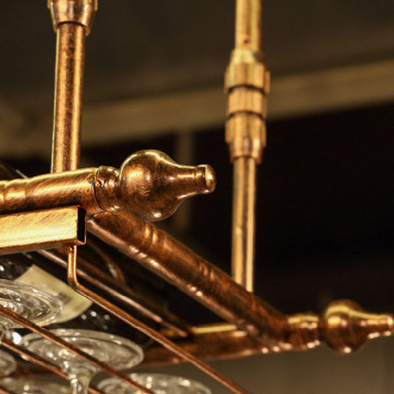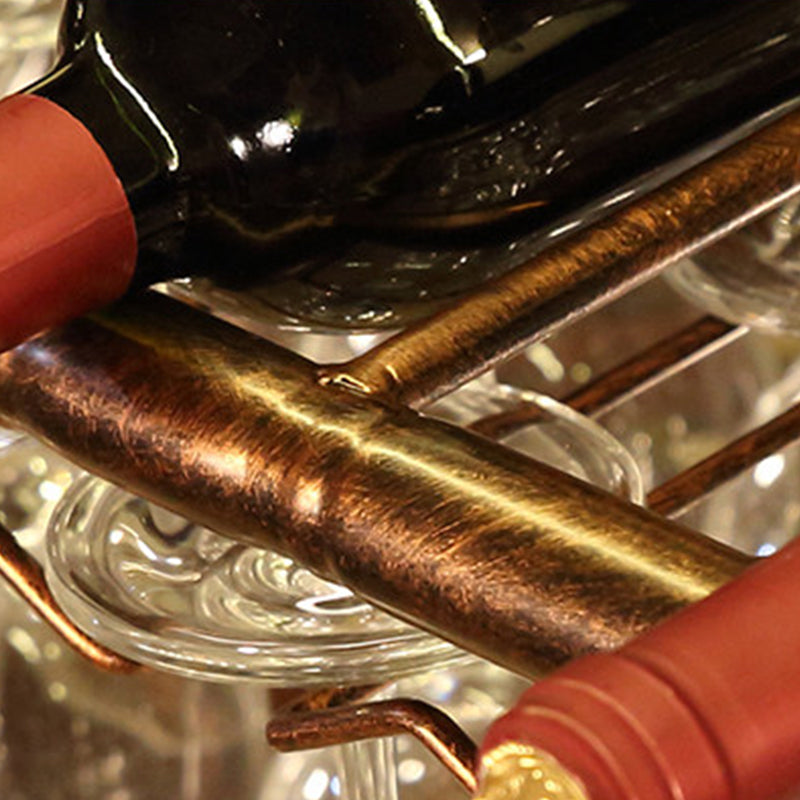 黒と真鍮の金属吊りワインボトル&ガラスラック工業用ワイングラスラック