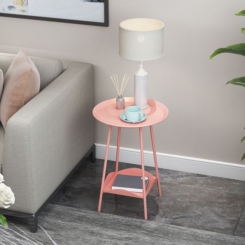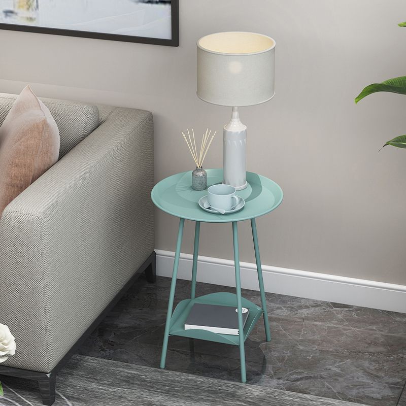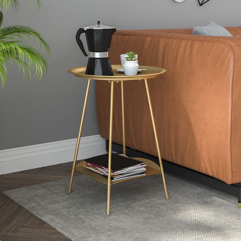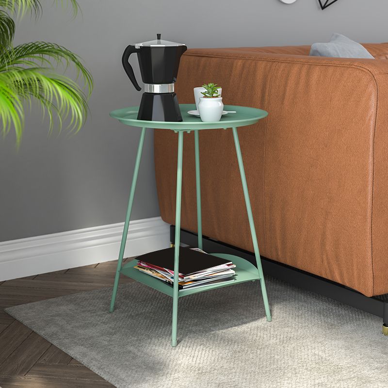 ミッドセンチュリーメタルラウンドトレイトップサイドテーブル22インチ4脚エンドテーブル付き棚付き