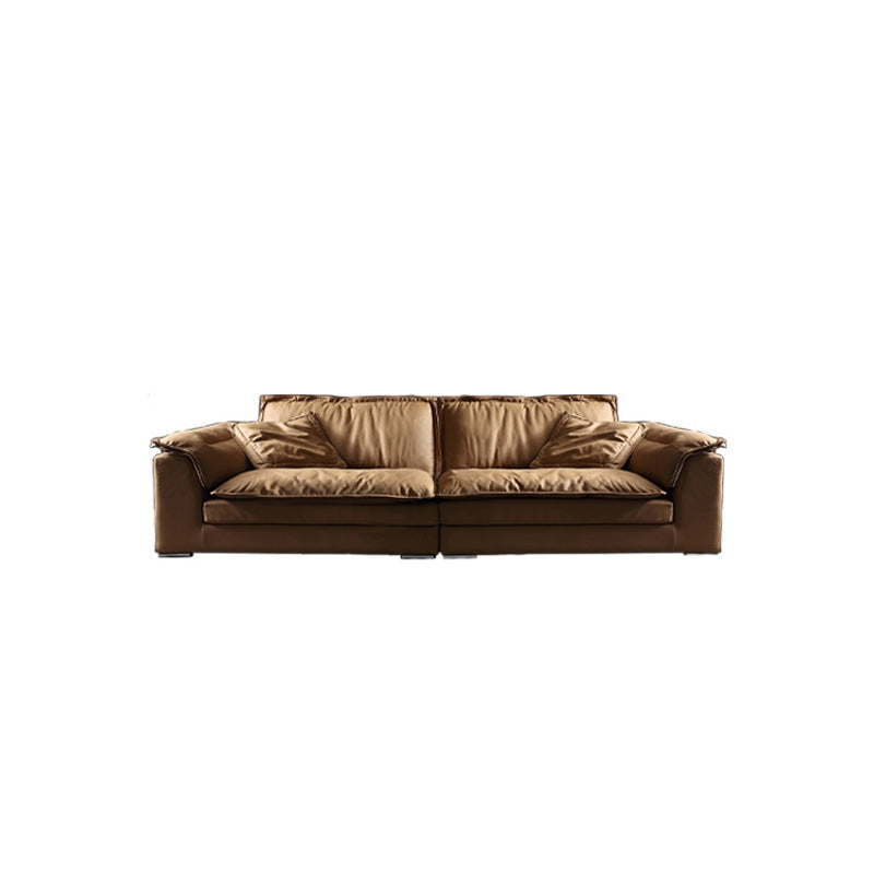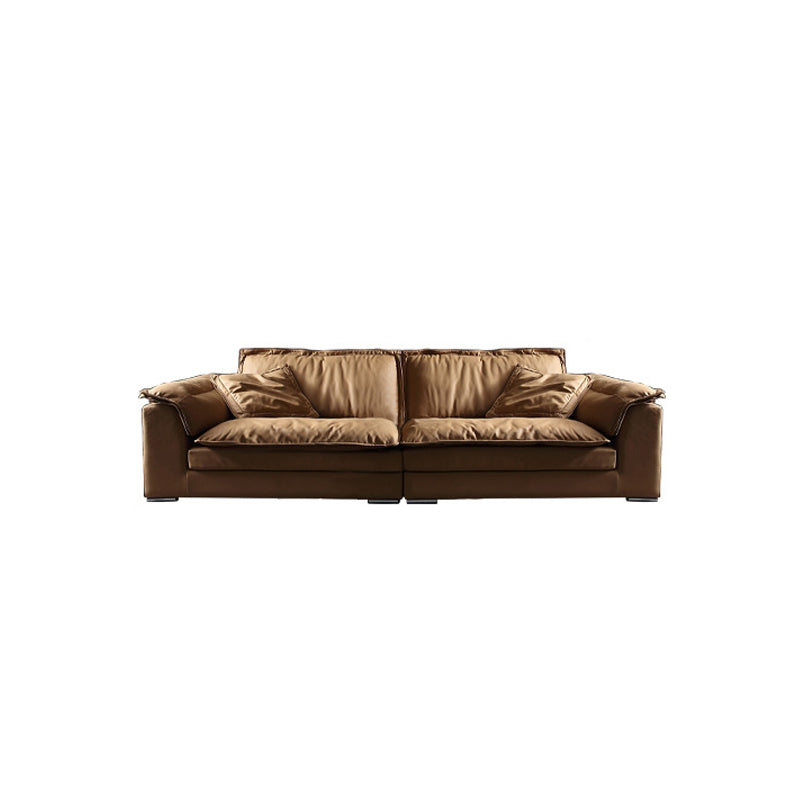モダンフェイクレザーブラウンソファ枕トップアームクッションソファ&チャイズ