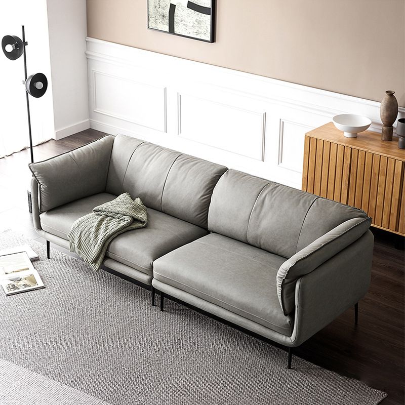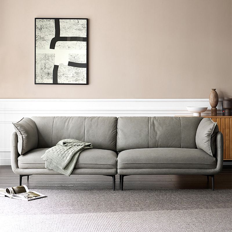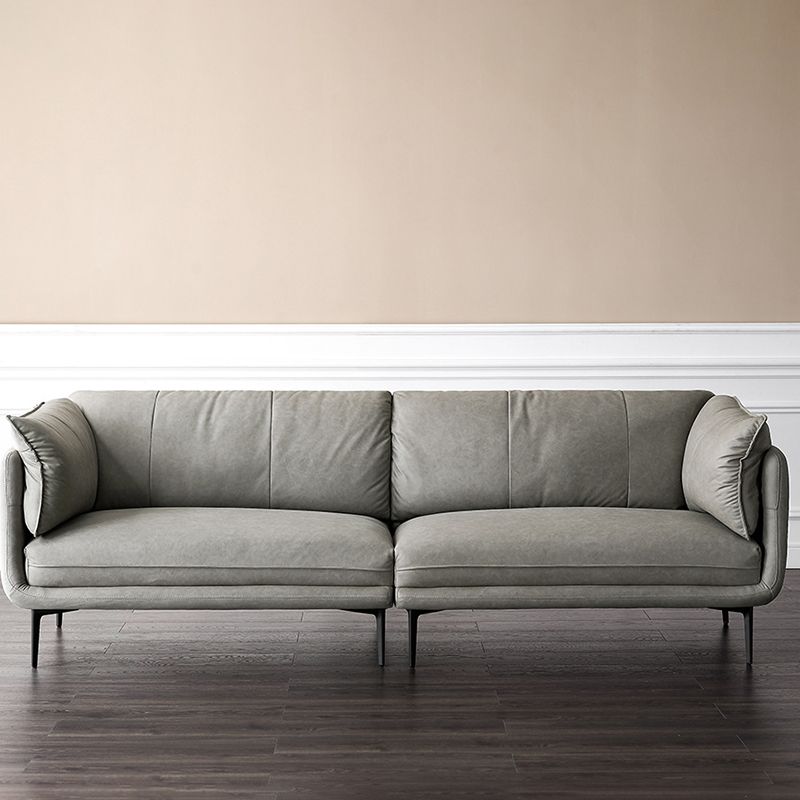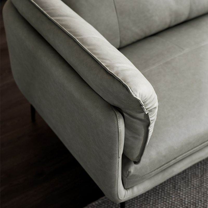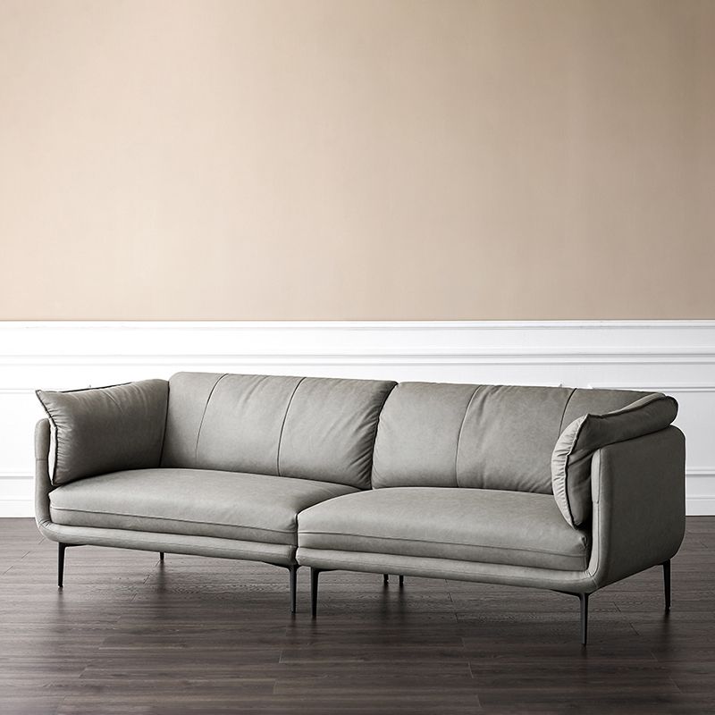 灰色のモダンなフェイクレザーソファステイン耐性タキシードアームソファ