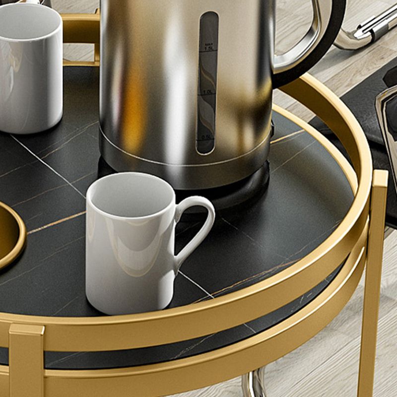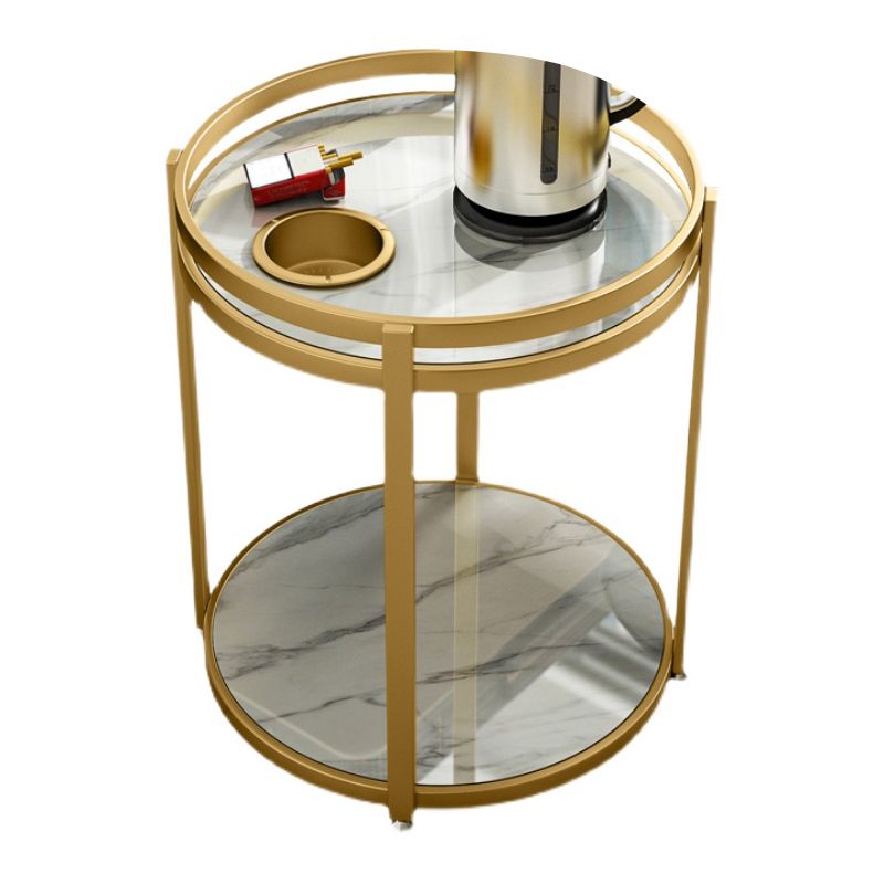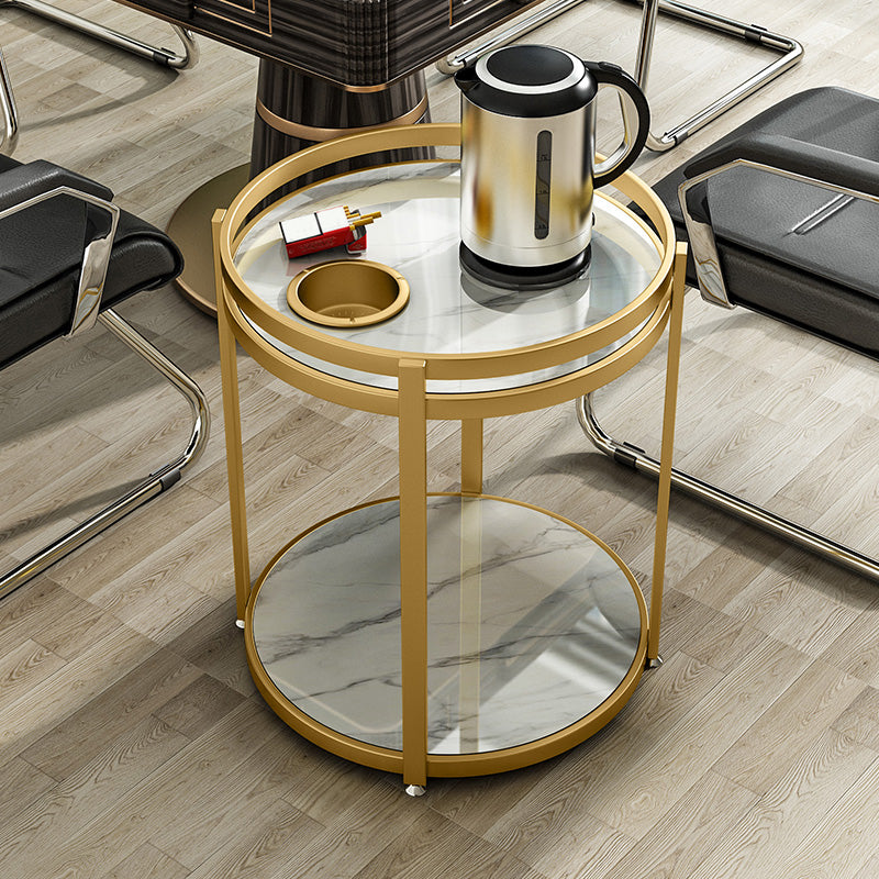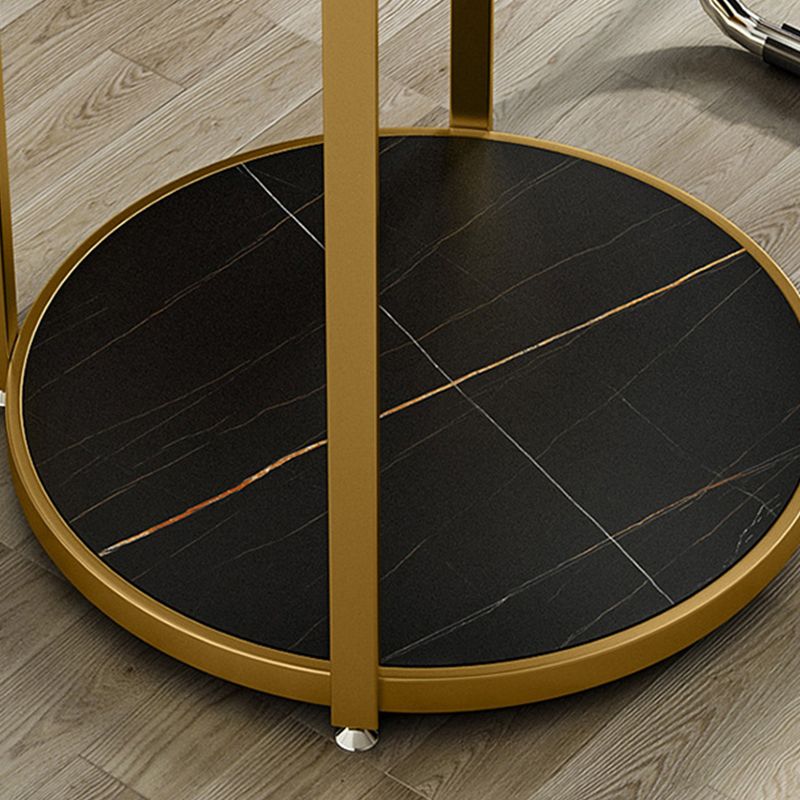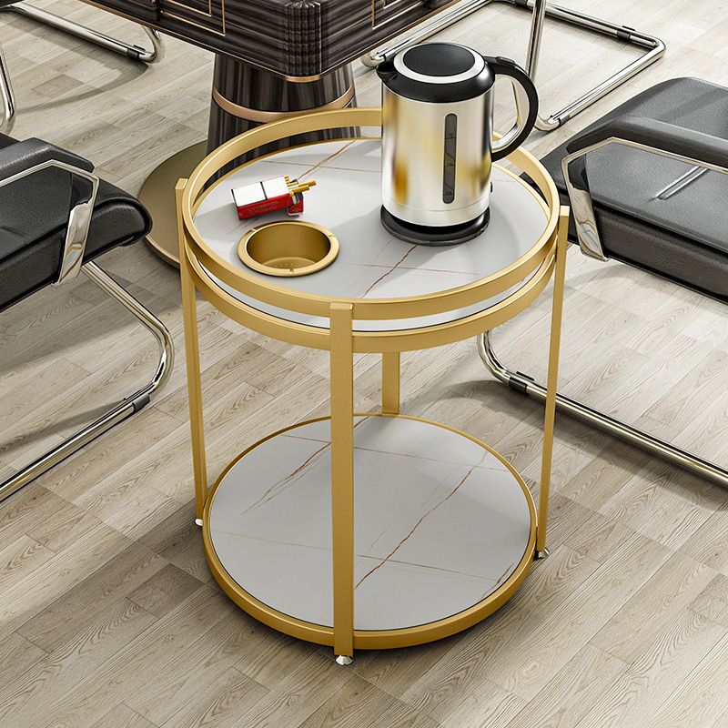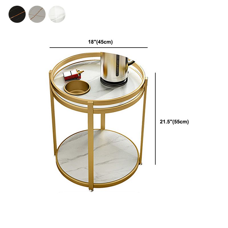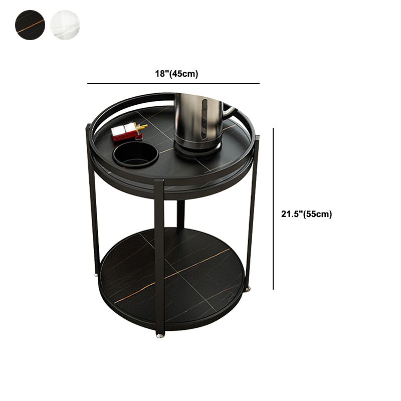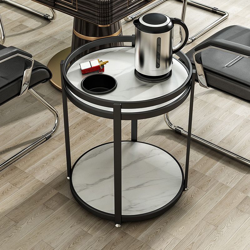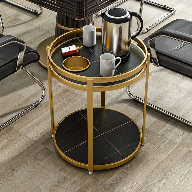 モダンメタルフレームエンドテーブルスレートラウンドダブルティアエンドテーブル
