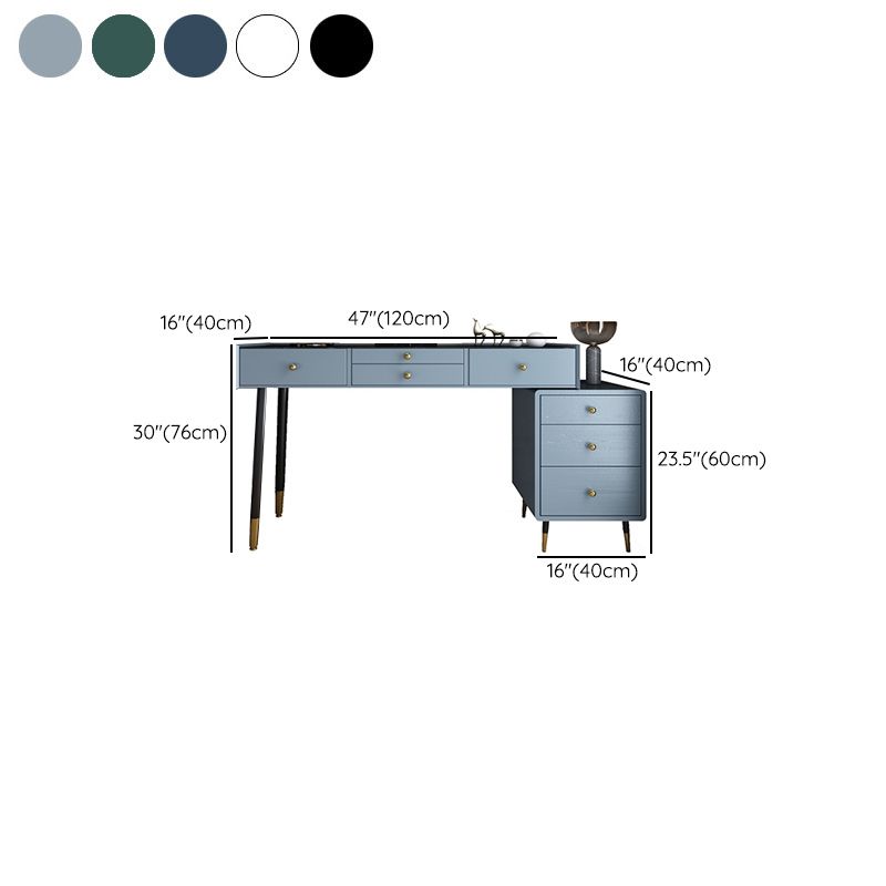 ベッドルーム用の鏡とスツールのあるモダンなソリッドウッドバニティドレッシングテーブル