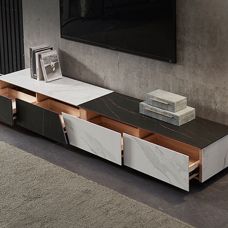モダンなテレビメディアスタンド16 "W石が囲まれたストレージテレビスタンドの引き出し付きコンソール