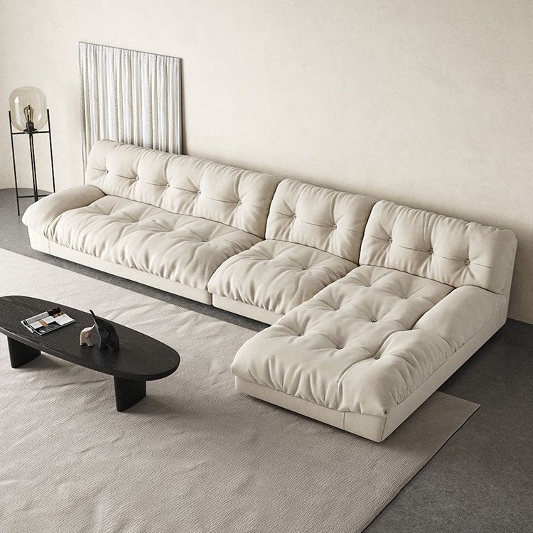 モダンホワイトタフトソファ&チャイズ29.92 "Hベルベットアームレスソファ