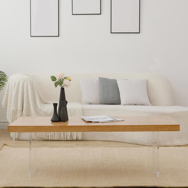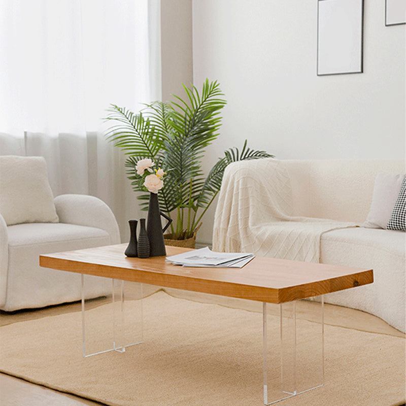 ナチュラルソリッドウッドとアクリルコーヒーカクテルテーブル-15.75 "H