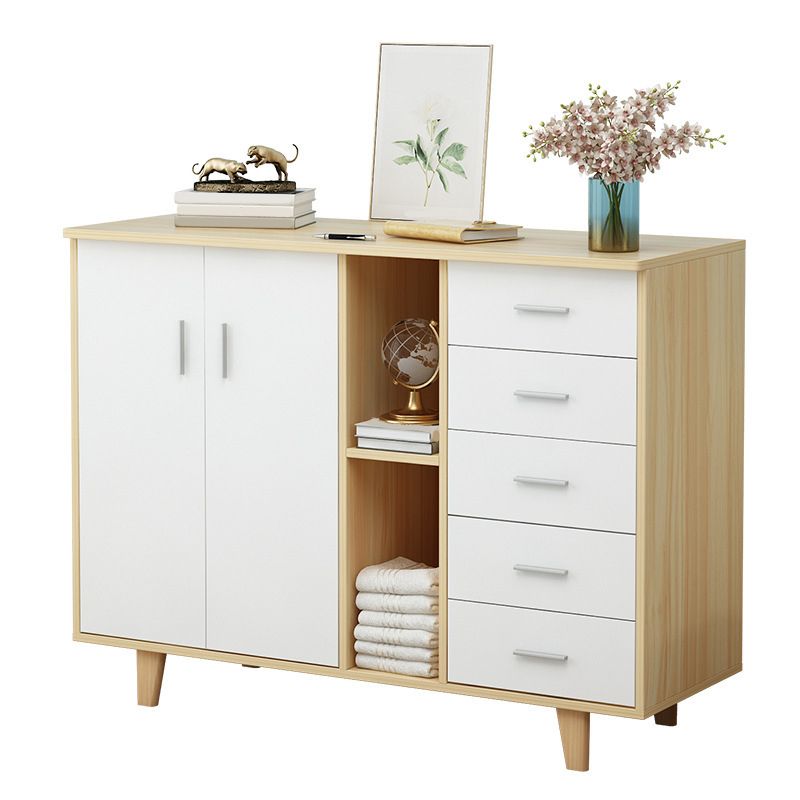 5つの引き出しとまっすぐな脚側のキャビネットを備えた長方形の木材アクセントキャビネット