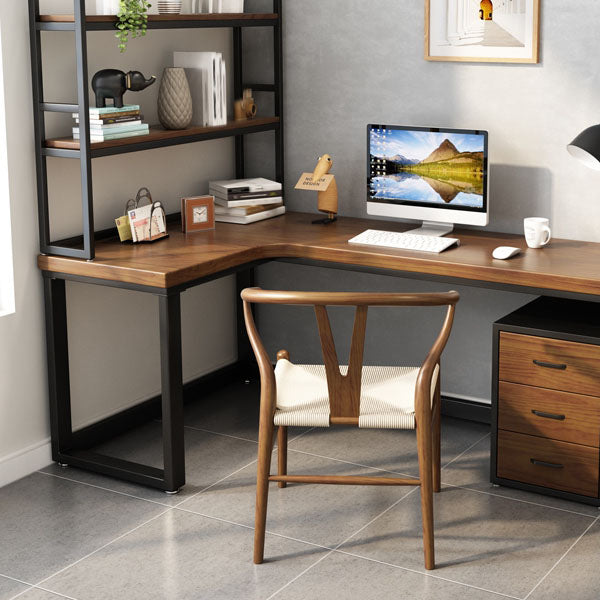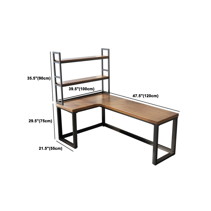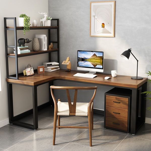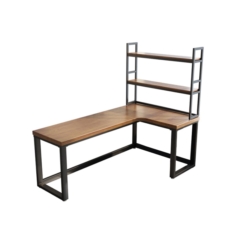 ソリッドウッドホームライティングテーブル工業用L字型固定オフィステーブル付き棚付き